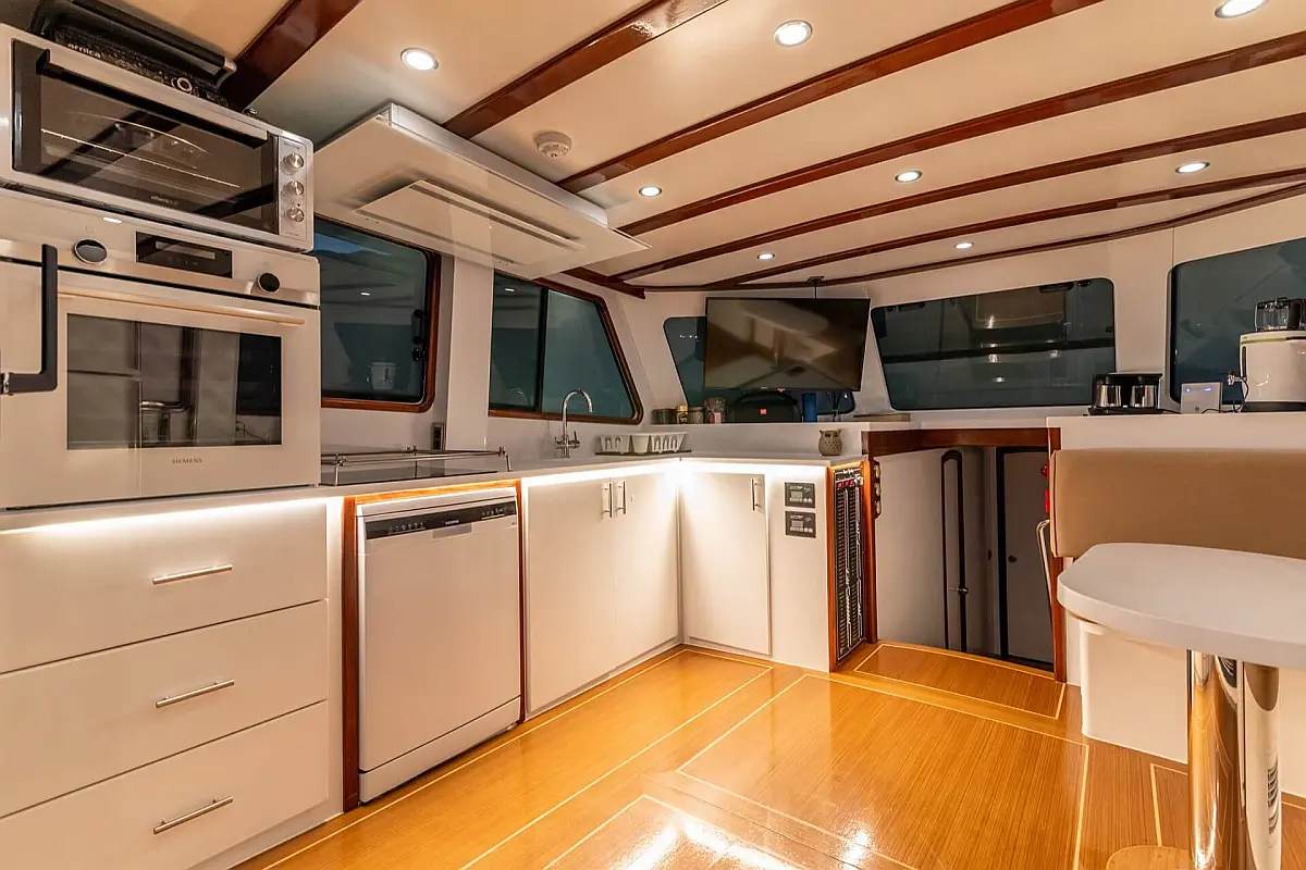 Generator, Flybridge, Beiboot, Bimini, Teakdeck, Klimaanlage, Heizung, Kühlschrank, Eismaschine, Wassermacher