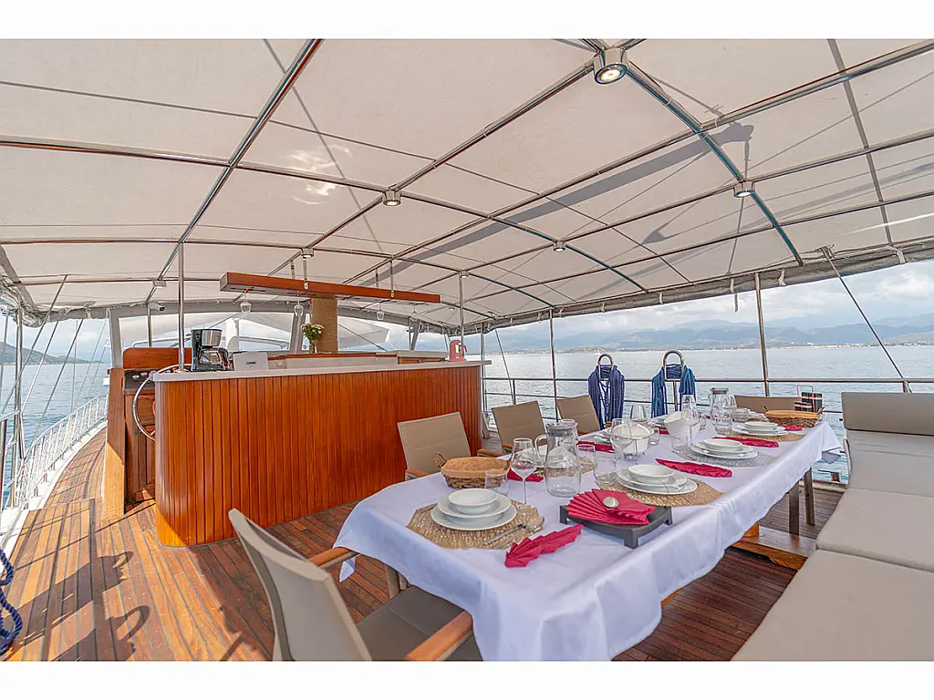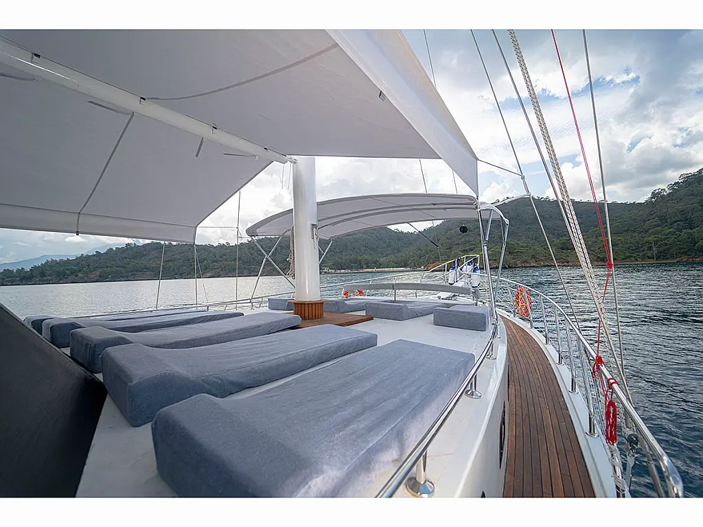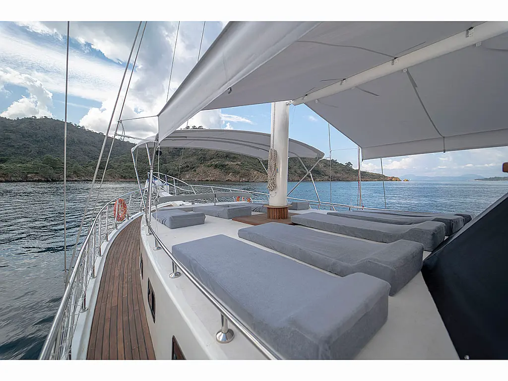 Teak Cockpit, Beiboot, Cockpit-Kissen, Kaffeemaschine, Klimaanlage, Generator, Elektrische Toilette, Kühlschrank, Teakdeck