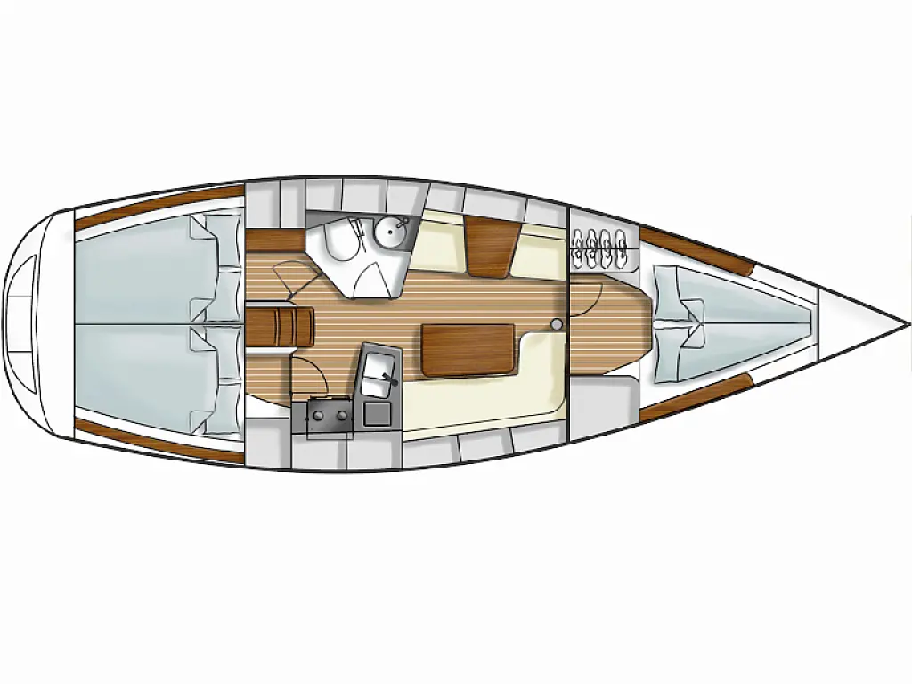 Kühlschrank, Außenbordmotor, Beiboot, Bimini, Sprayhood, Solar-Panele, Inverter