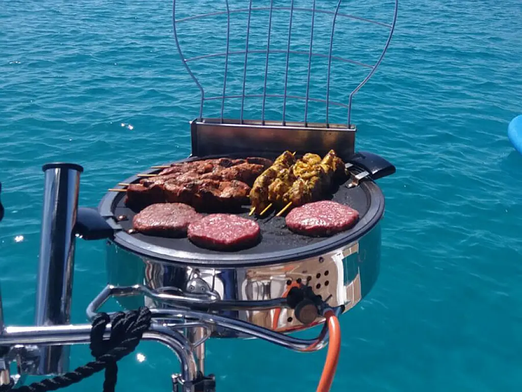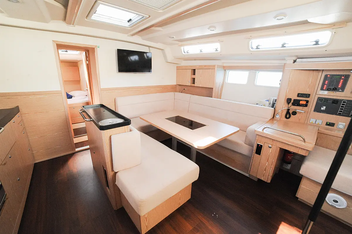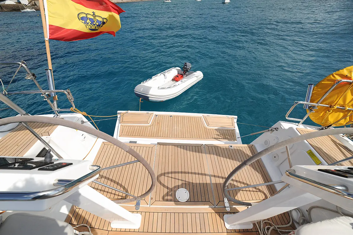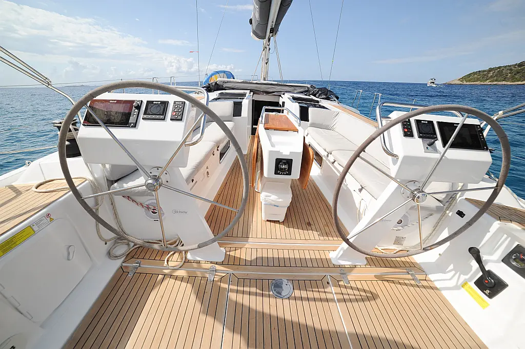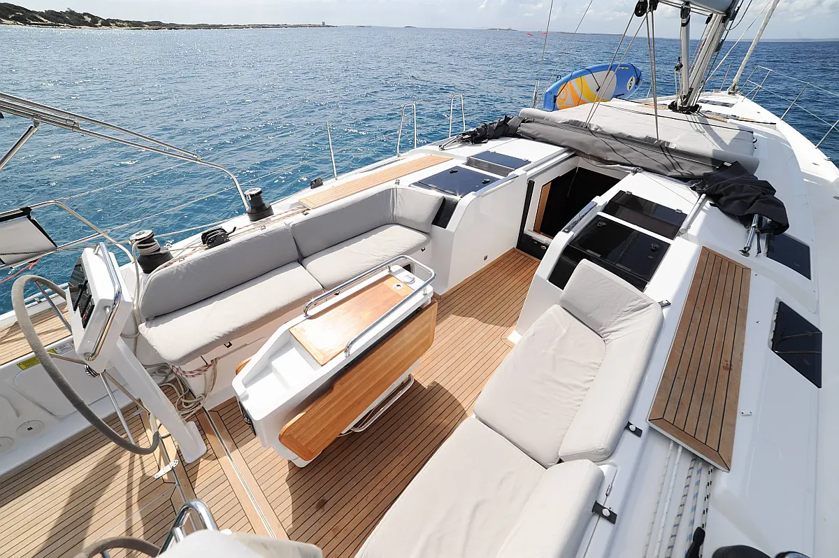 Teakdeck, Elektrische Winch (Segel), Cockpit-Kissen, Kühlschrank, Wi-Fi und Internet, Teak Cockpit, Kaffeemaschine, Elektrische Toilette, Wassermacher