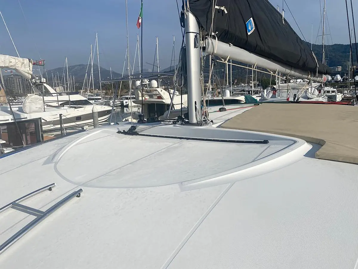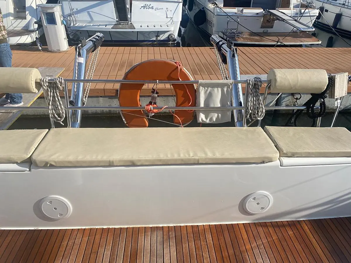 Cockpit-Kissen, Wassermacher, Elektrische Toilette, Generator, Klimaanlage, Lautsprecher im Cockpit, Beiboot, Bimini, Teak Cockpit