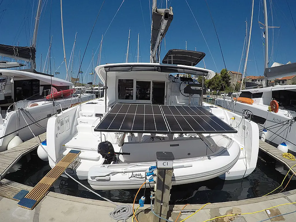 Generator, Solar-Panele, Klimaanlage, Cockpit-Kissen, Außenbordmotor, Beiboot, Wi-Fi und Internet