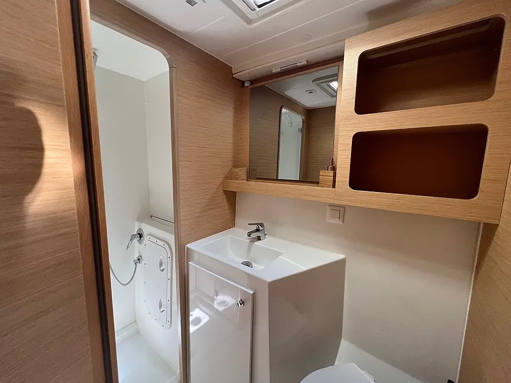 Klimaanlage, Beiboot, Elektrische Winch (Segel), Lautsprecher im Cockpit, Kühlschrank, Wassermacher