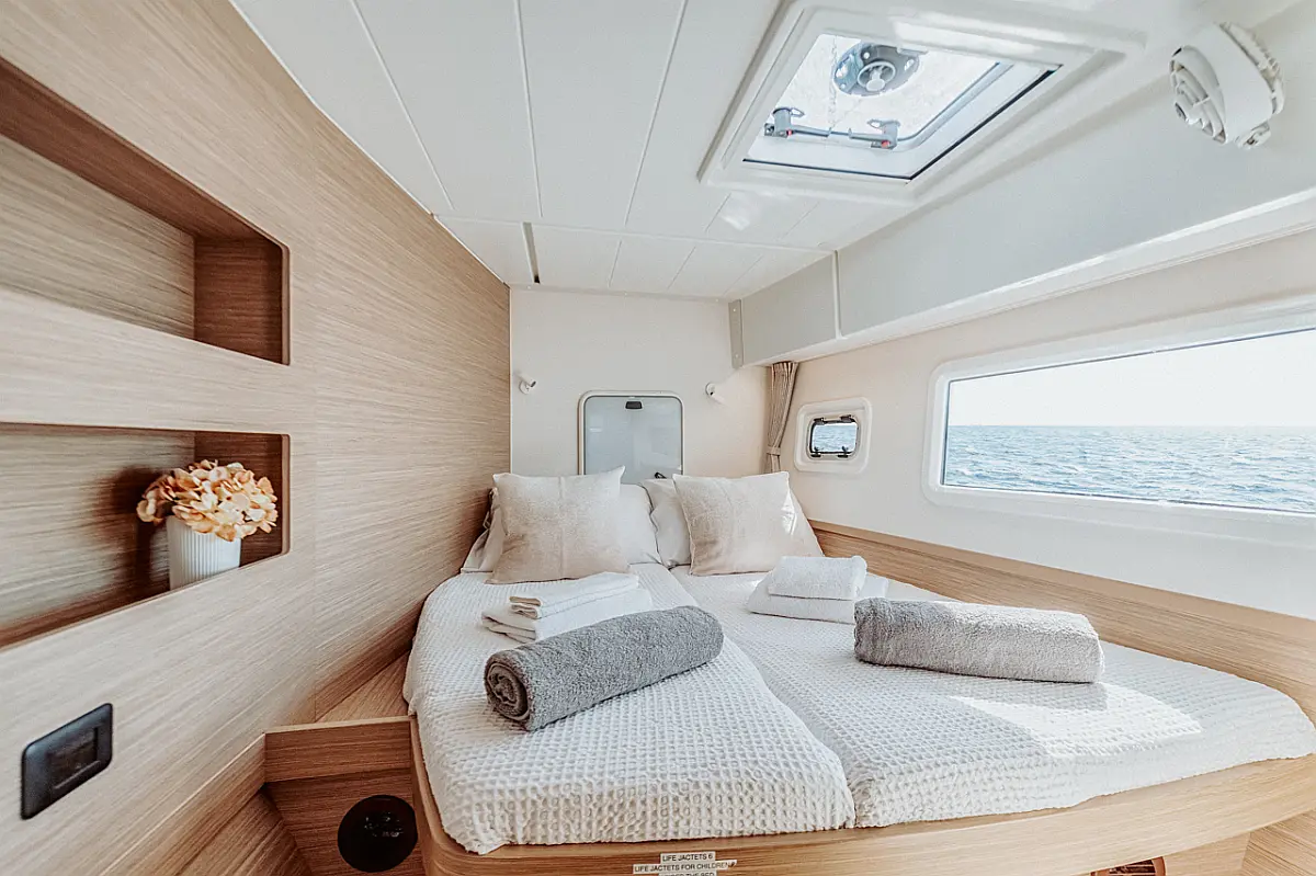 Generator, Klimaanlage, Wassermacher, Inverter, Bimini, Beiboot, Elektrische Toilette, Elektrische Winch (Segel), Außenbordmotor, Kühlschrank