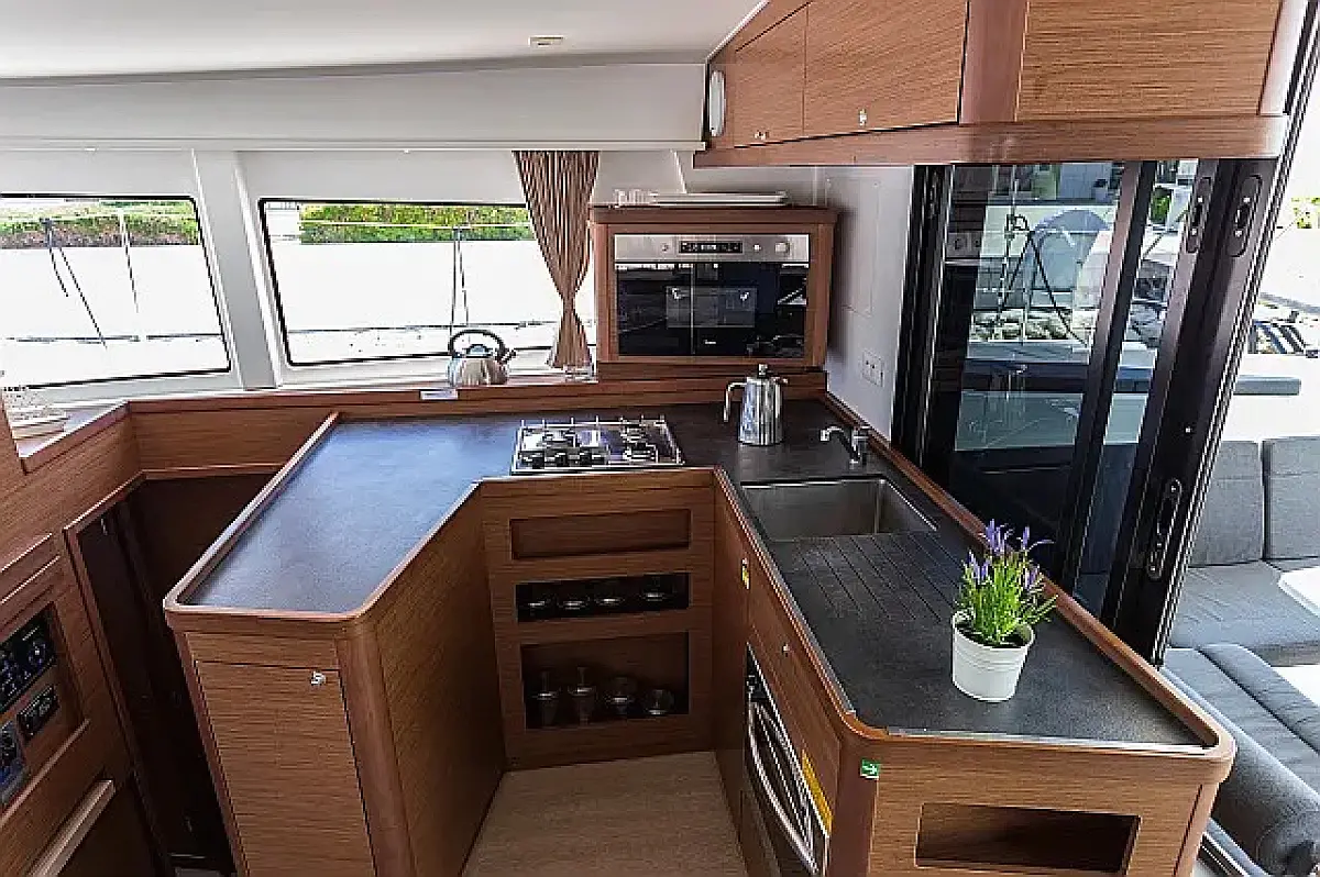 Kühlschrank, Klimaanlage, Bimini, Cockpit-Kissen, Lautsprecher im Cockpit, Beiboot, Kaffeemaschine, Elektrische Toilette, Generator, Heizung, Fäkalientank, Inverter, Außenbordmotor, Teak Cockpit, Wi-Fi und Internet