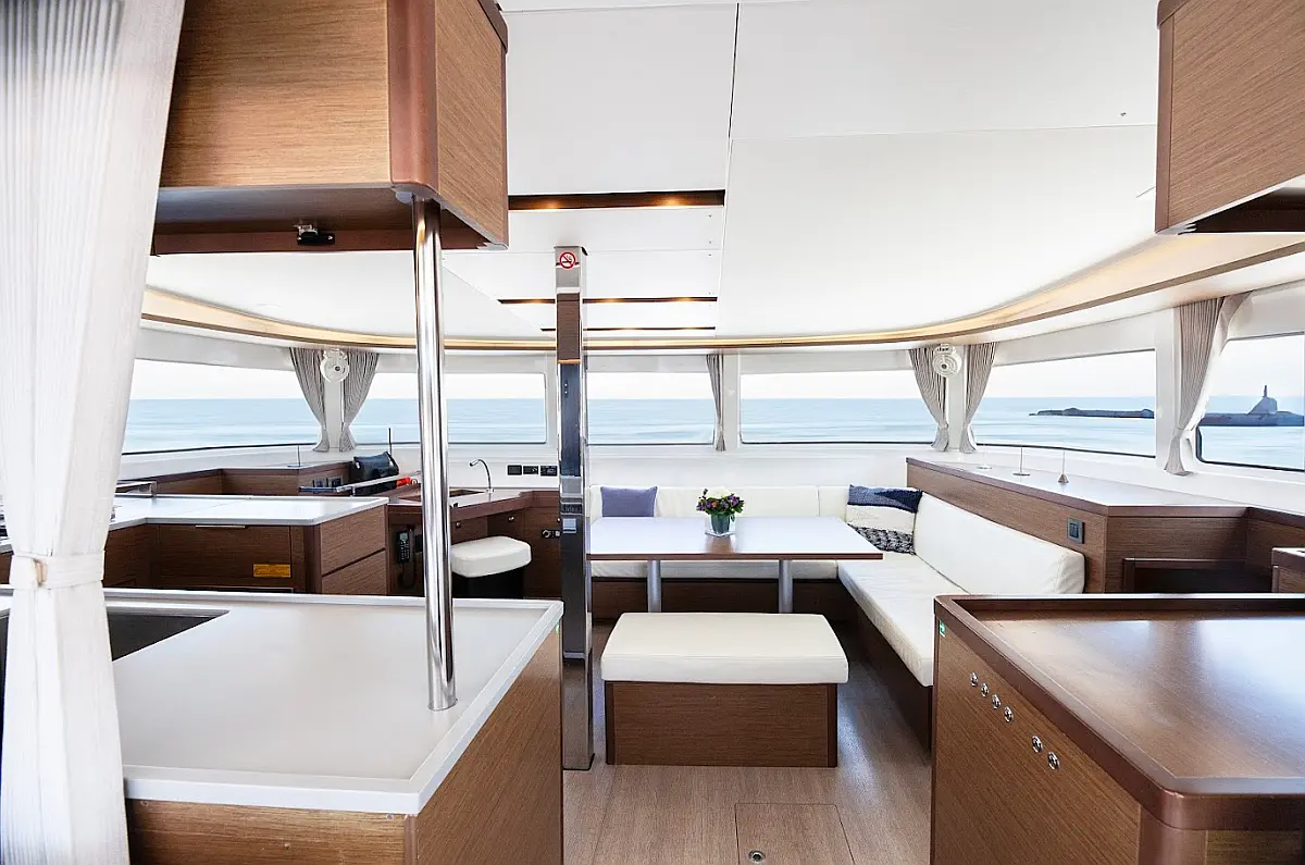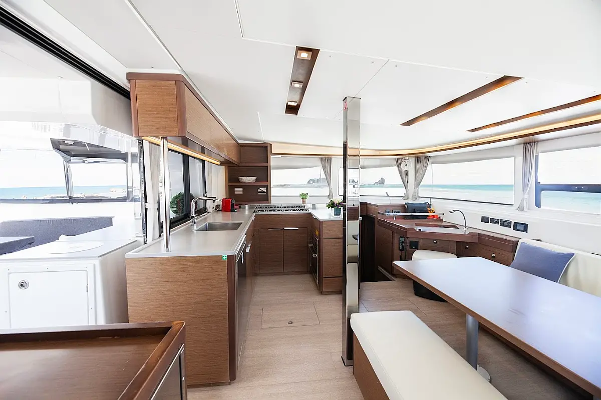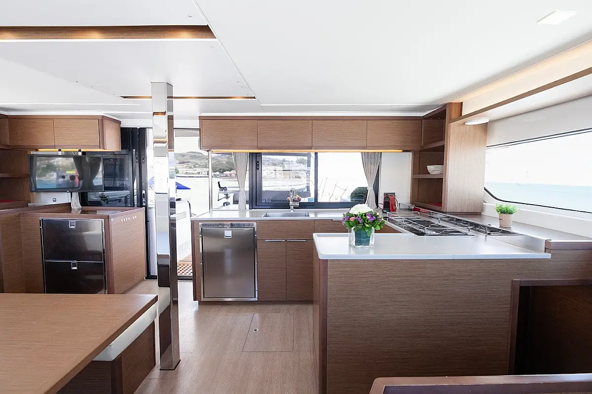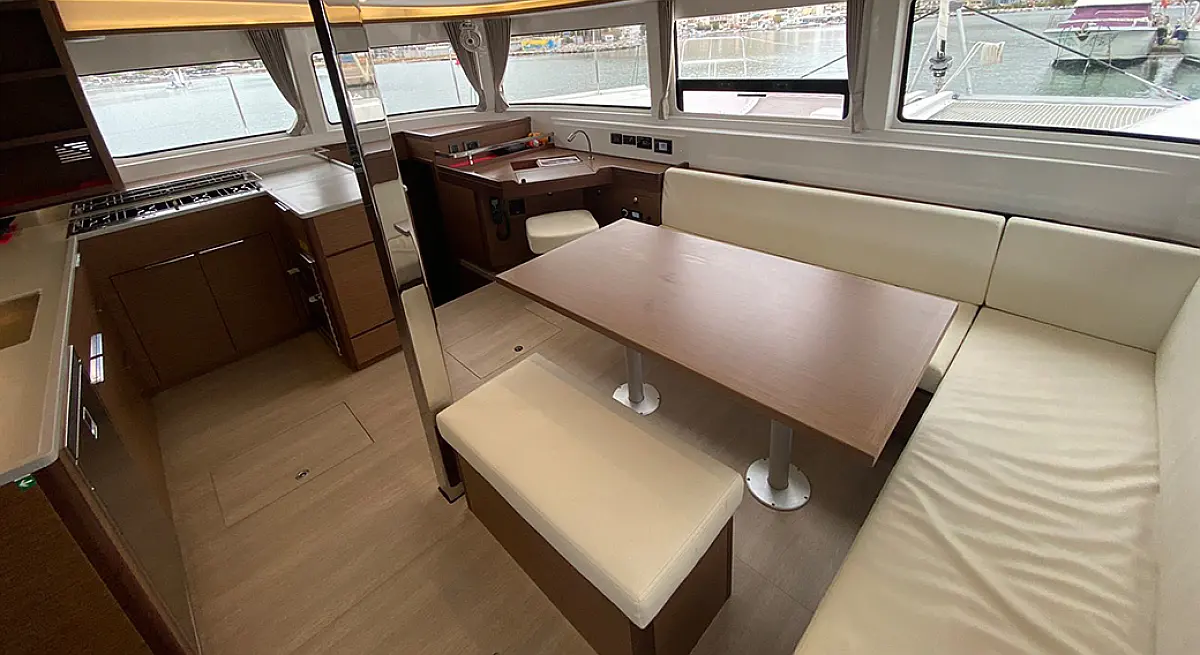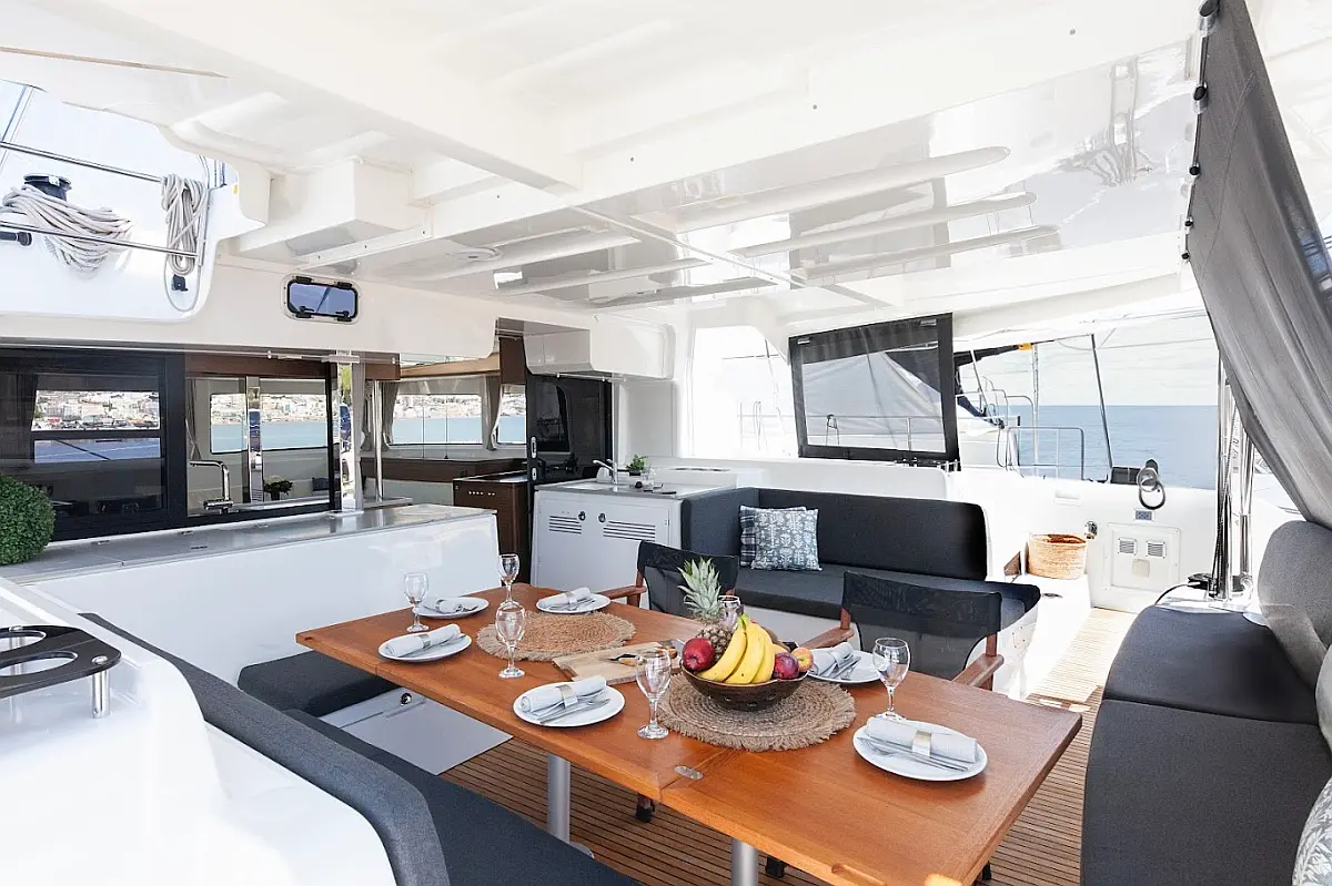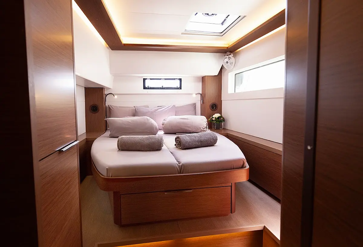 Klimaanlage, Bimini, Elektrische Toilette, Generator, Inverter, Solar-Panele, Sprayhood, Wassermacher, Cockpit-Kissen, Kaffeemaschine, Außenbordmotor, Beiboot
