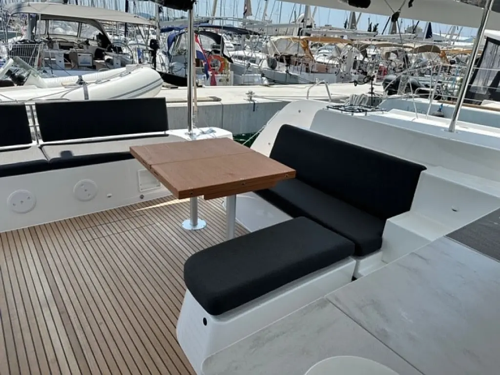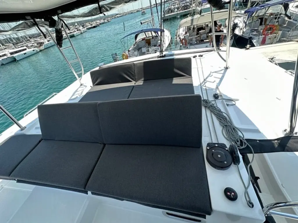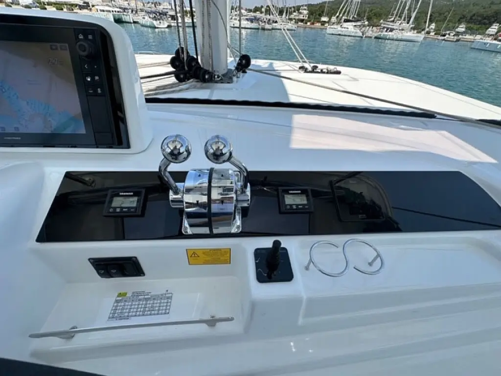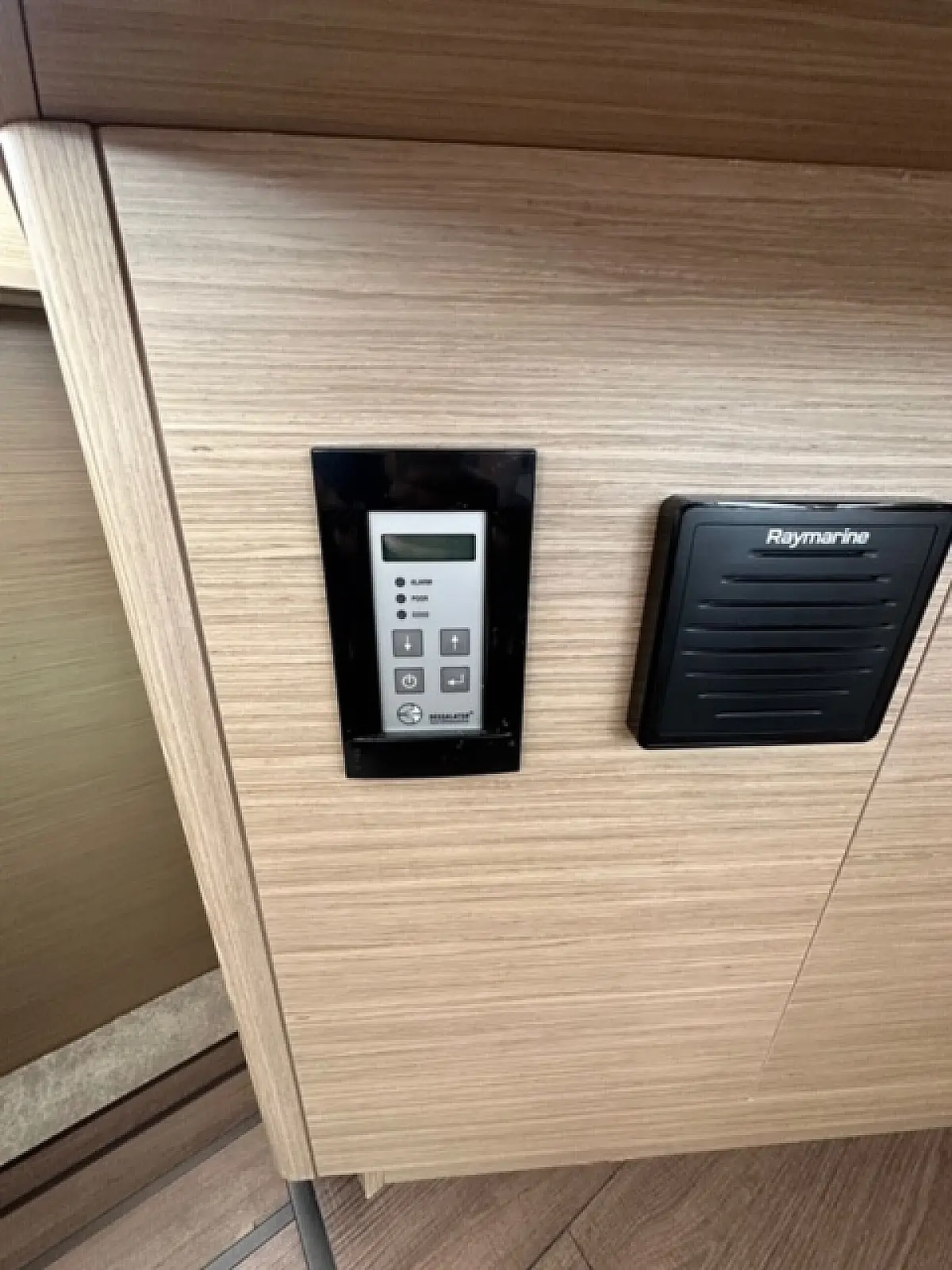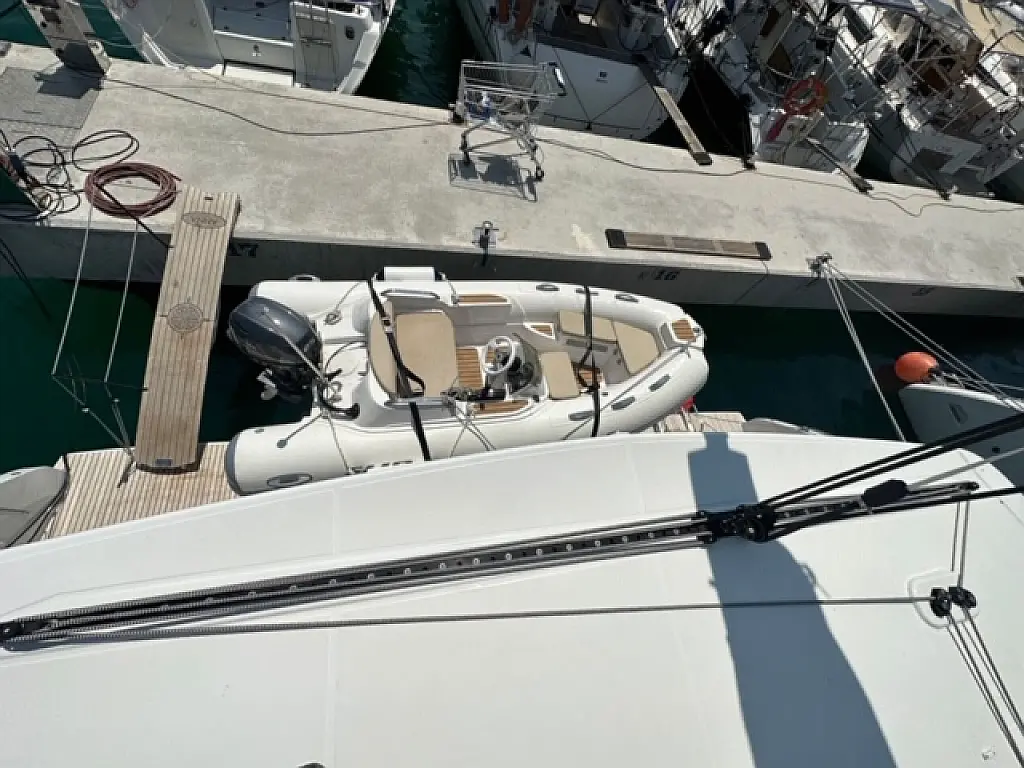 Cockpit-Kissen, Teak Cockpit, Kühlschrank, Klimaanlage, Beiboot, Geschirrspüler, Generator, Eismaschine, Kaffeemaschine, Elektrische Toilette, Solar-Panele, Wassermacher, Heizung