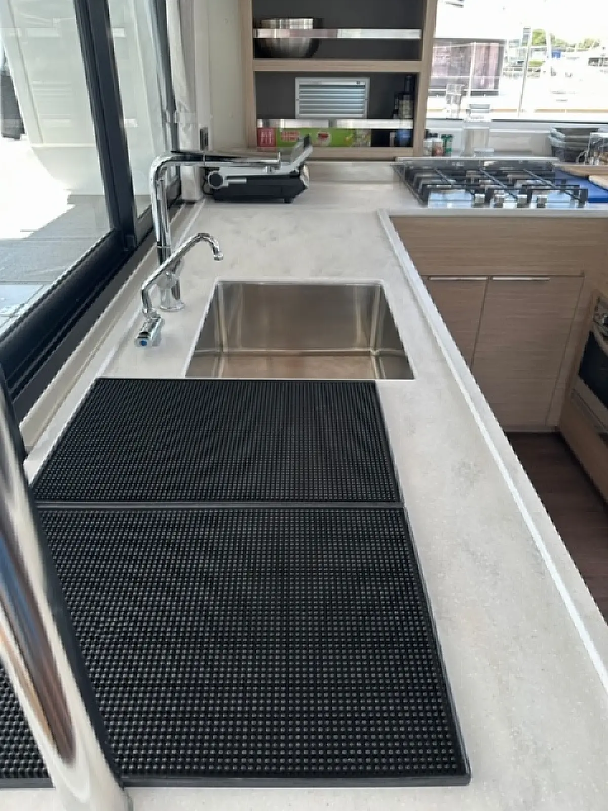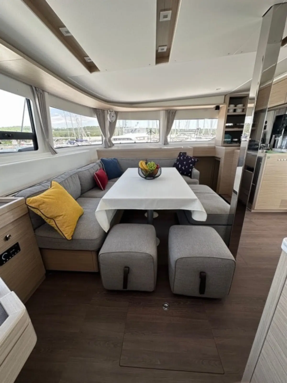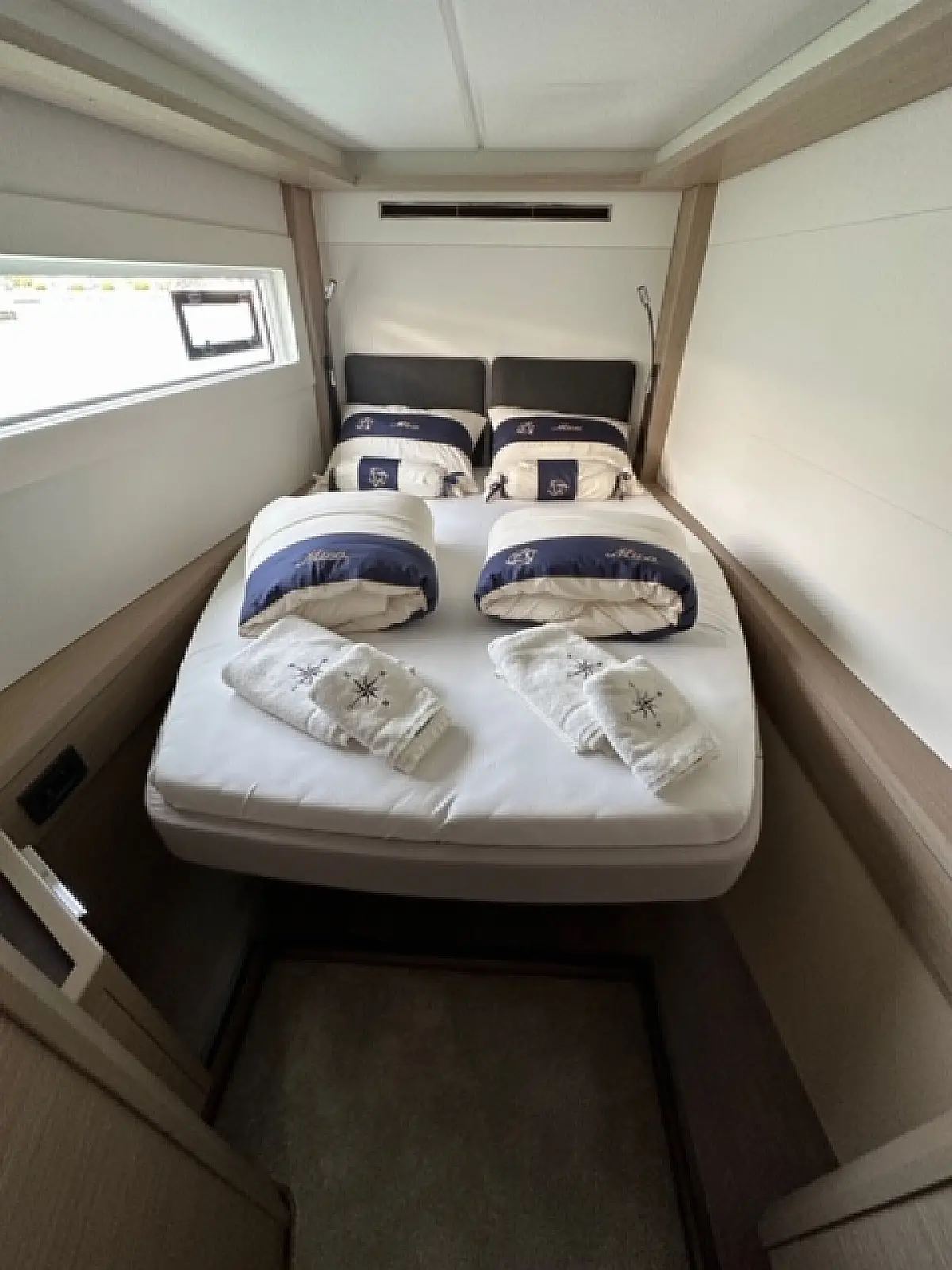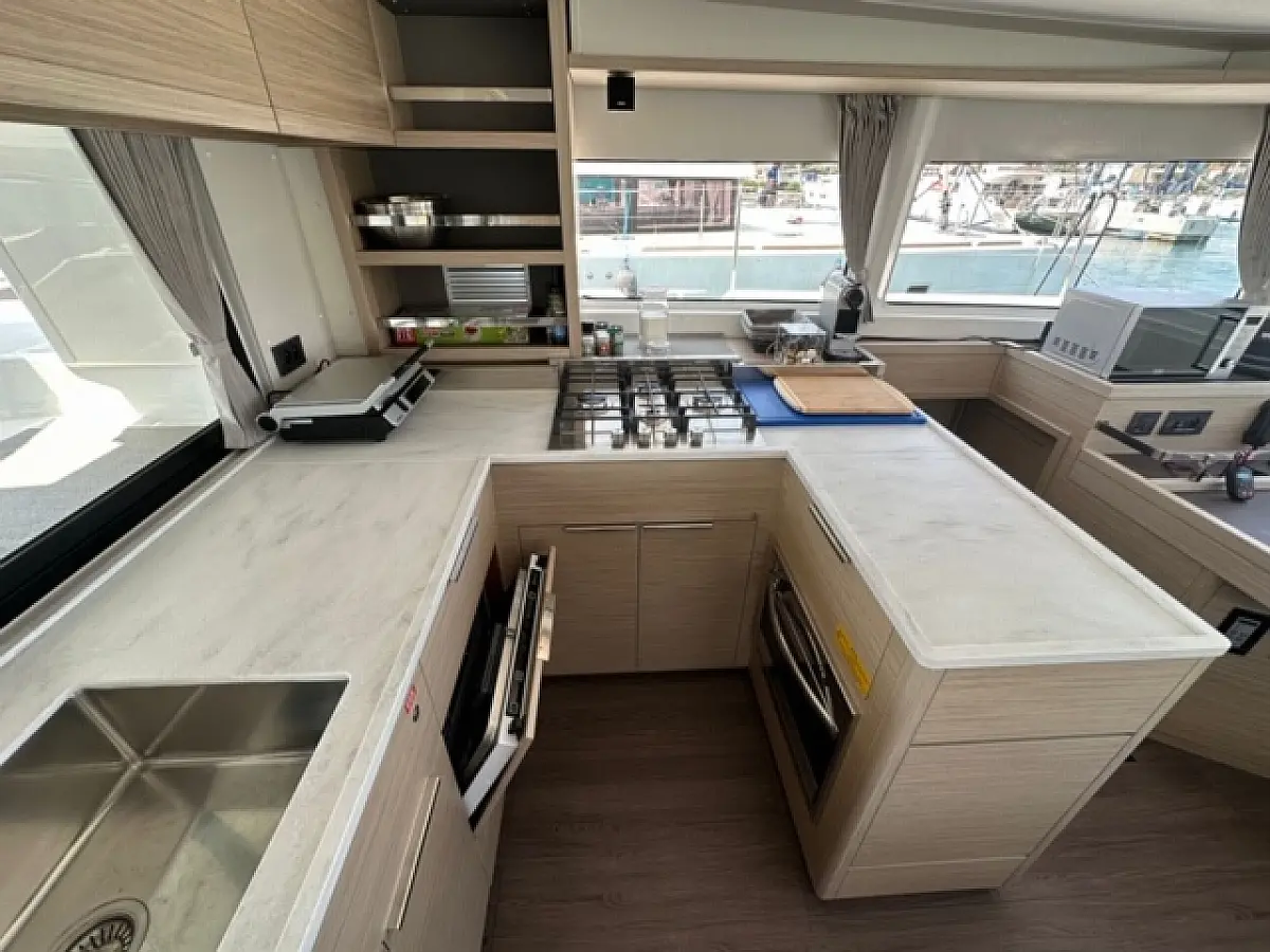 Cockpit-Kissen, Teak Cockpit, Kühlschrank, Klimaanlage, Beiboot, Geschirrspüler, Generator, Eismaschine, Kaffeemaschine, Elektrische Toilette, Solar-Panele, Wassermacher, Heizung