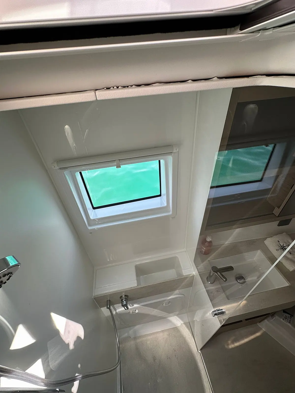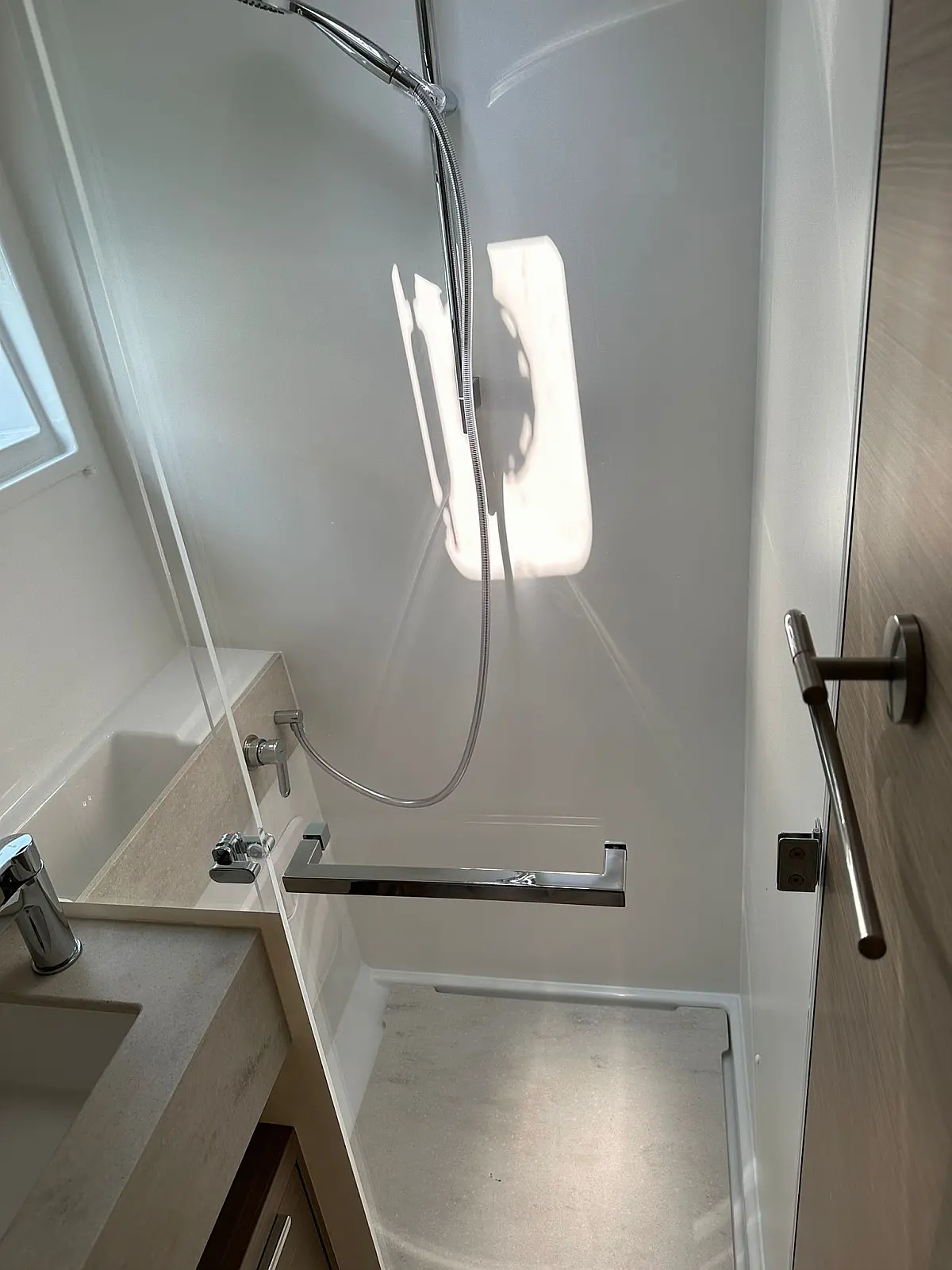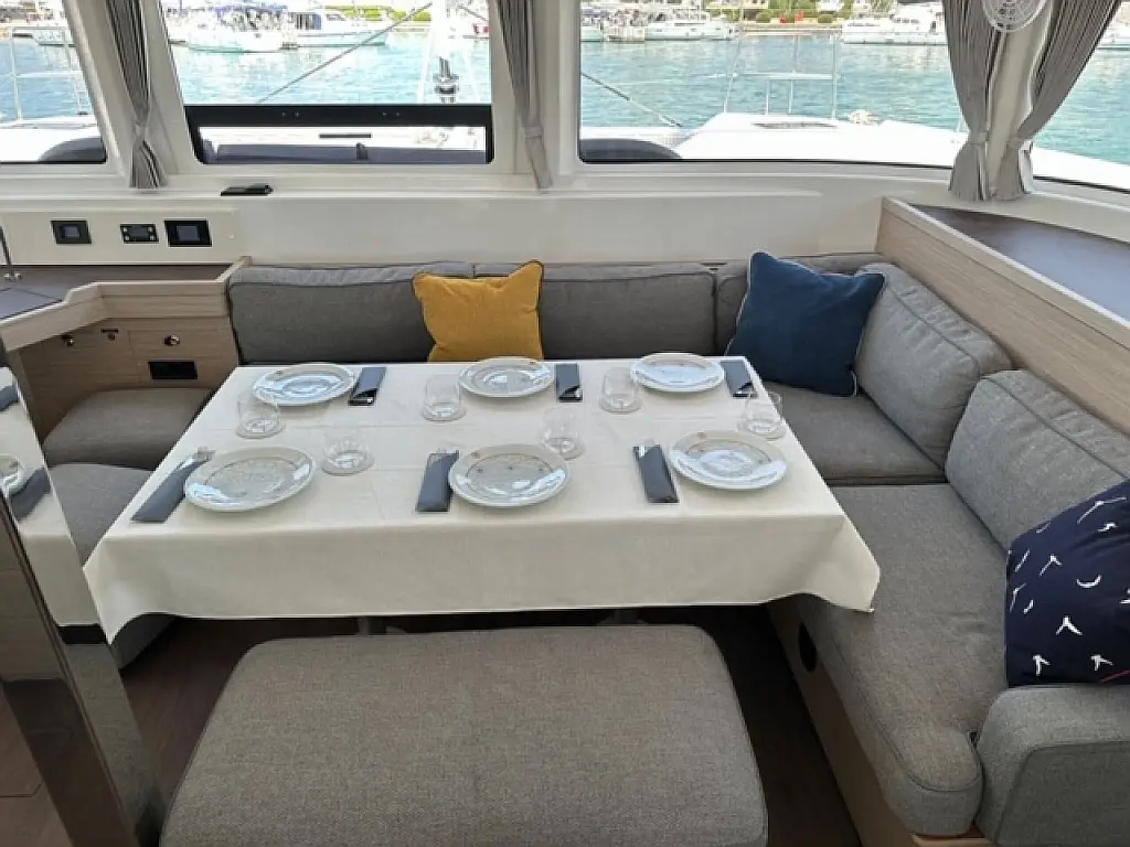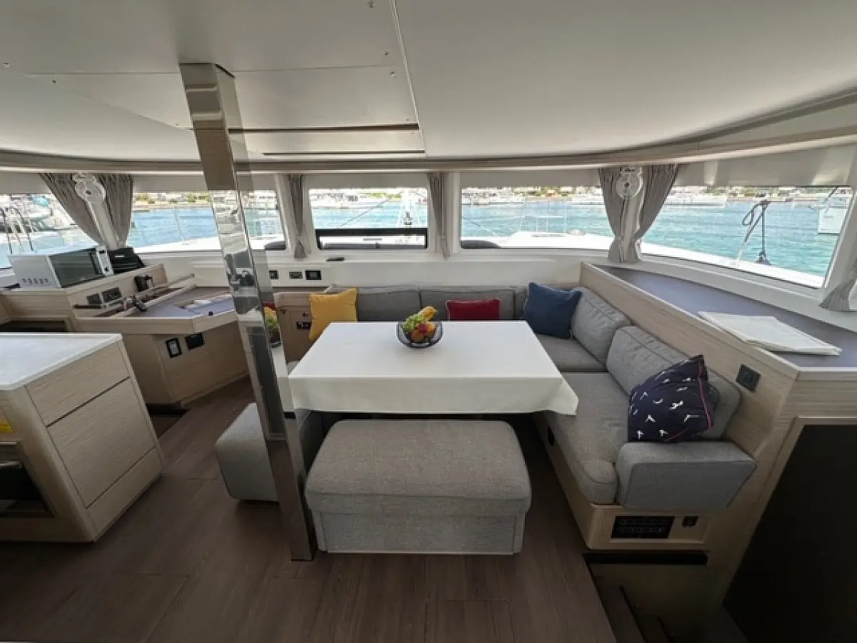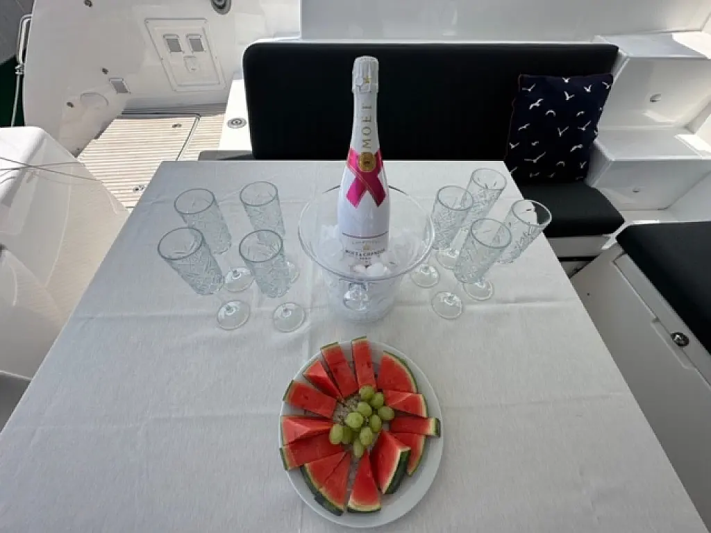 Cockpit-Kissen, Teak Cockpit, Kühlschrank, Klimaanlage, Beiboot, Geschirrspüler, Generator, Eismaschine, Kaffeemaschine, Elektrische Toilette, Solar-Panele, Wassermacher, Heizung