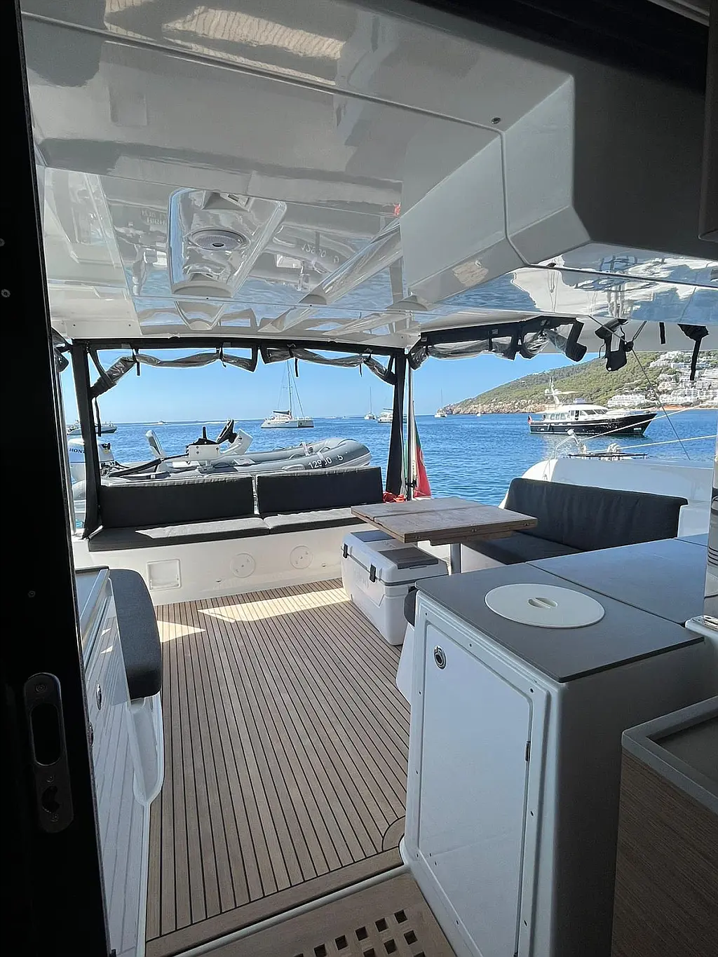 Generator, Beiboot, Elektrische Toilette, Lautsprecher im Cockpit, Bimini, Teakdeck, Wassermacher, Kühlschrank