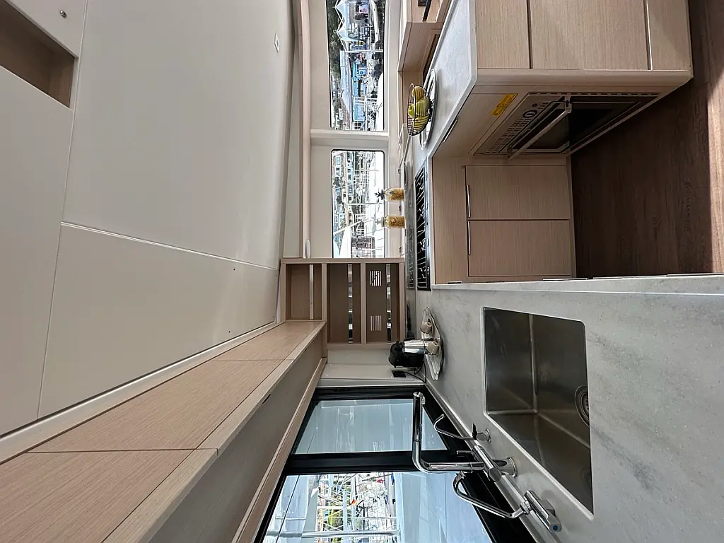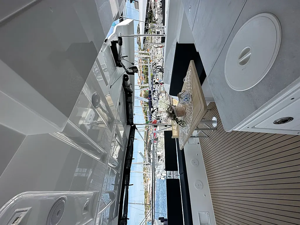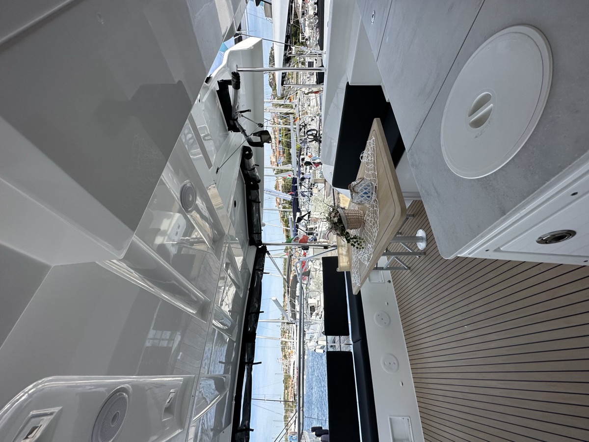 Cockpit-Kissen, Lautsprecher im Cockpit, Kaffeemaschine, Generator, Teak Cockpit, Kühlschrank, Bimini, Elektrische Toilette, Klimaanlage, Wassermacher
