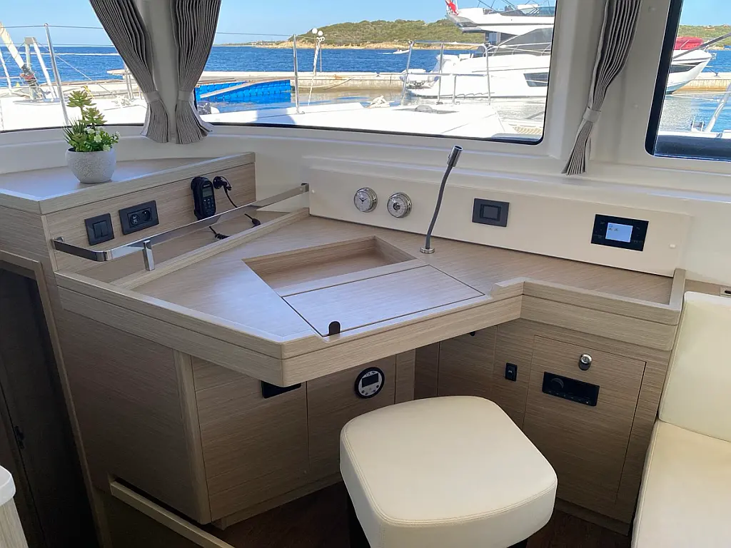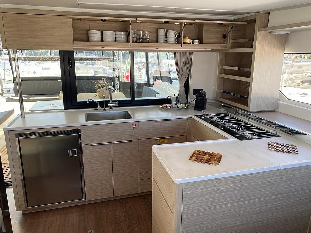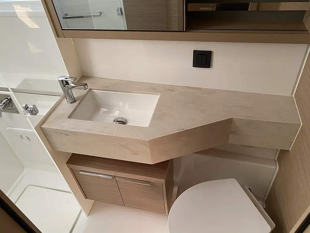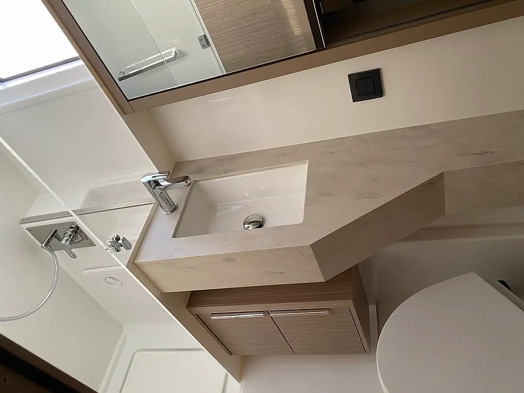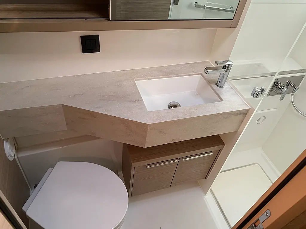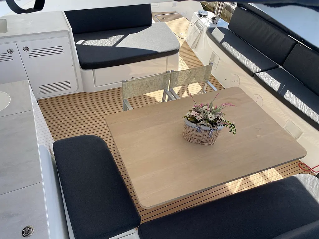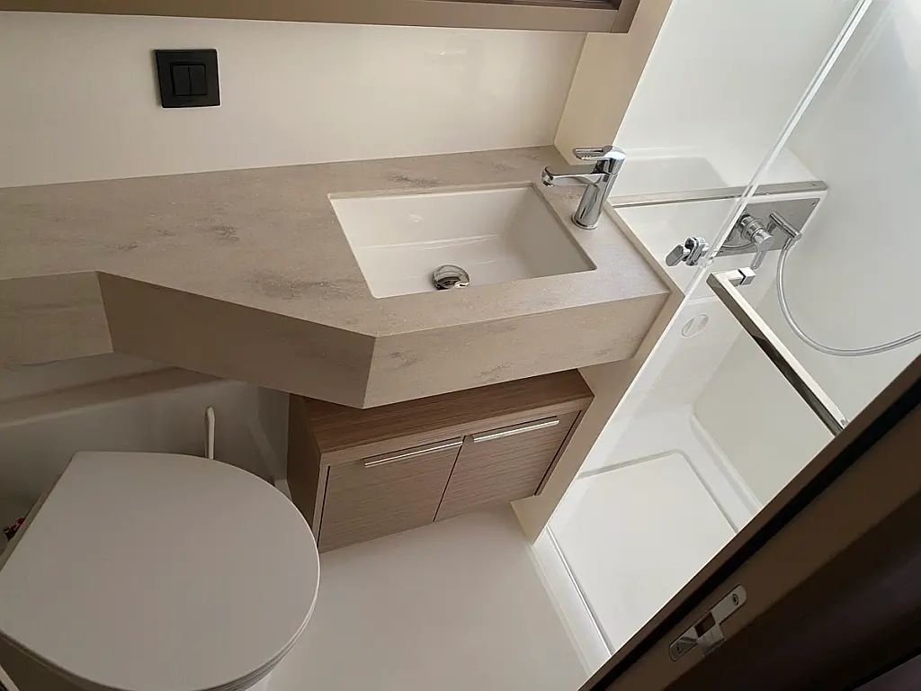 Cockpit-Kissen, Lautsprecher im Cockpit, Kaffeemaschine, Generator, Kühlschrank, Bimini, Elektrische Toilette, Klimaanlage, Wassermacher