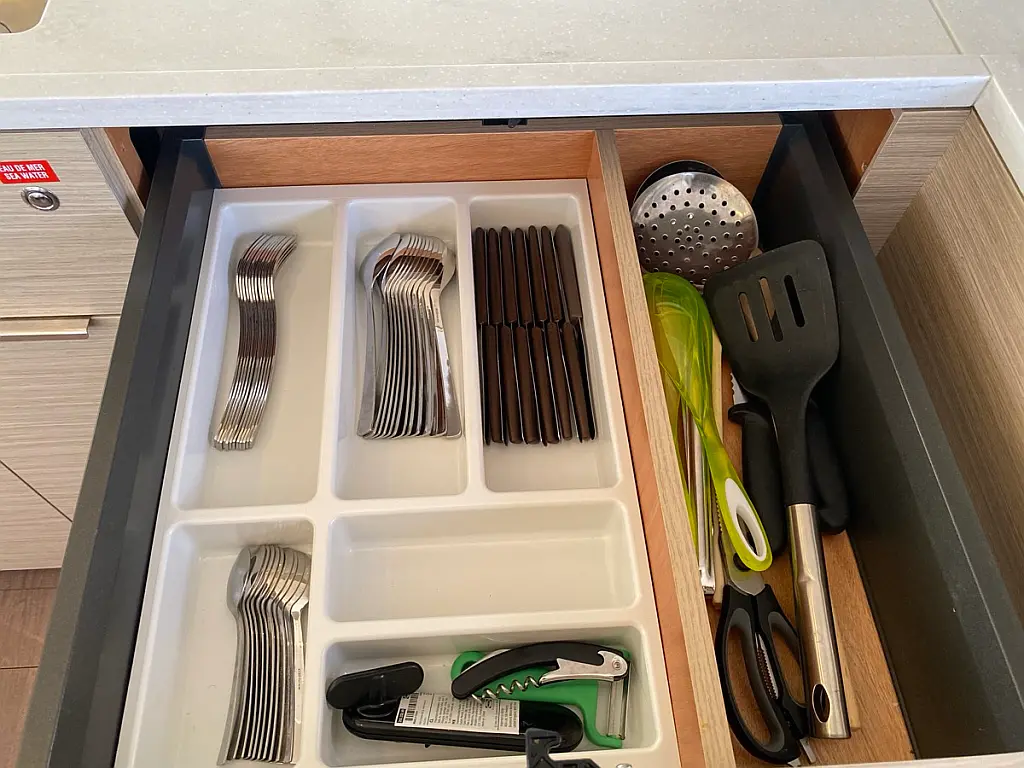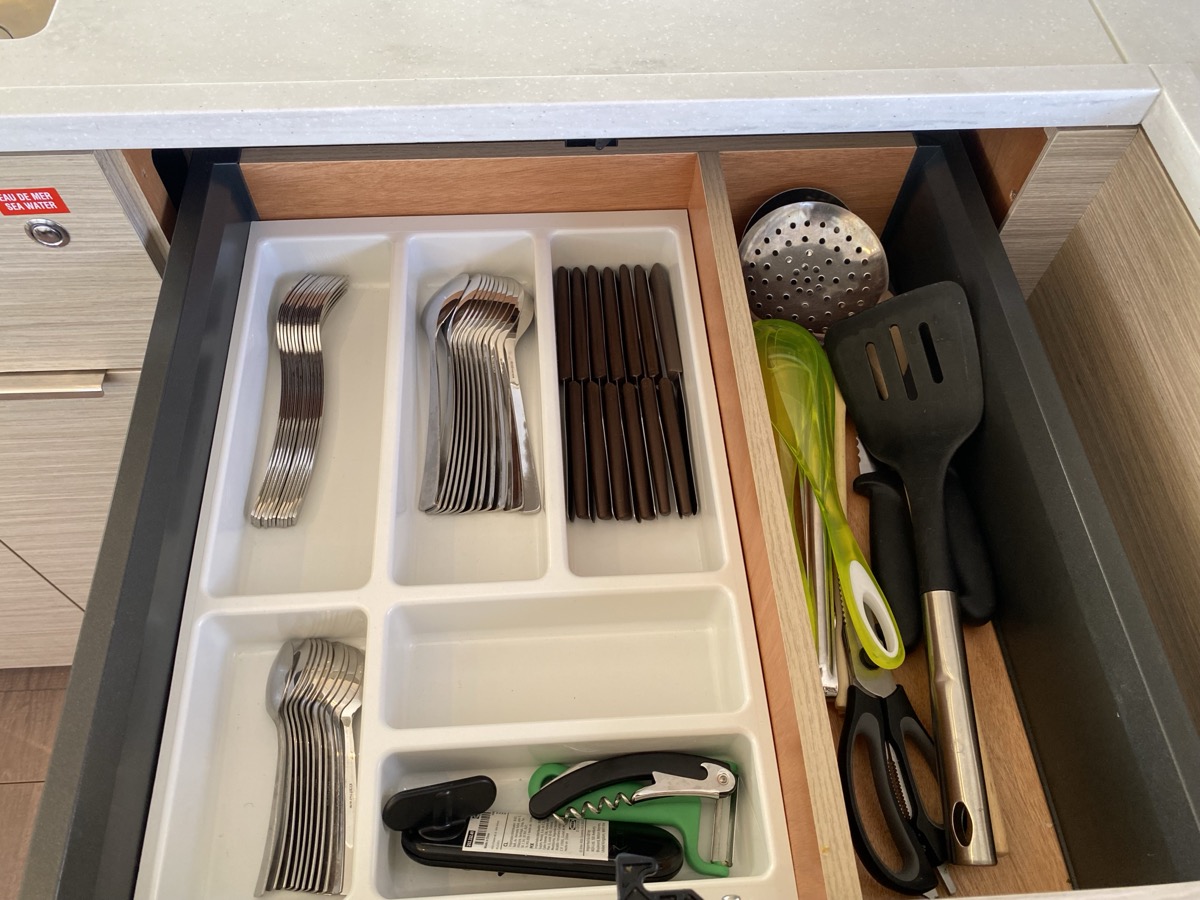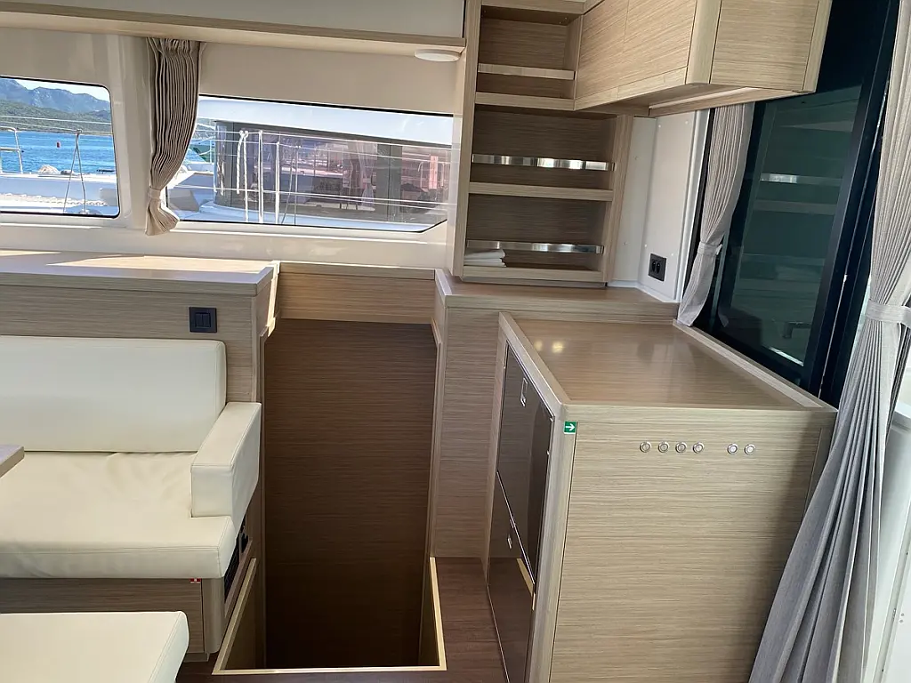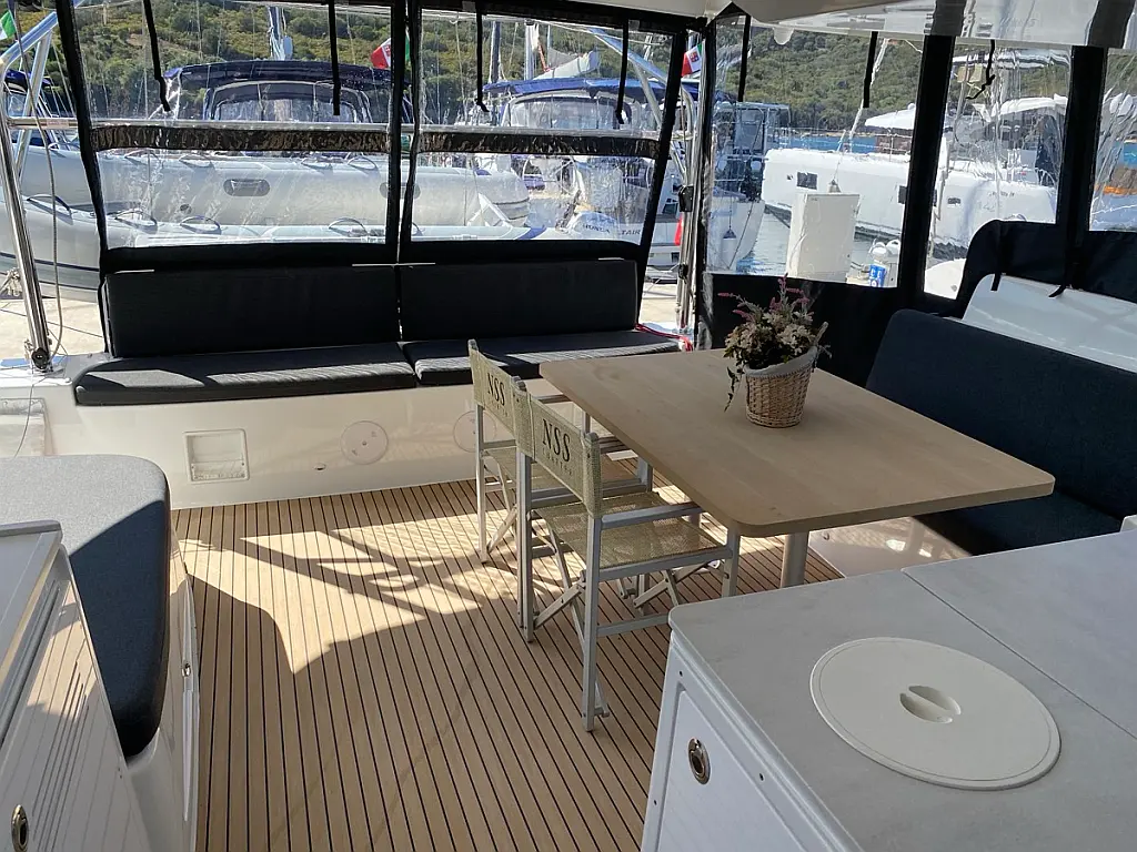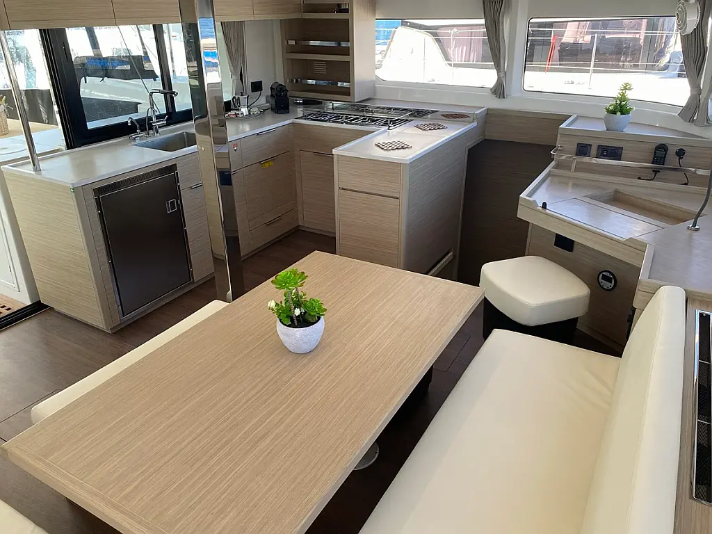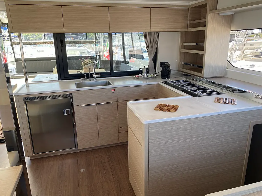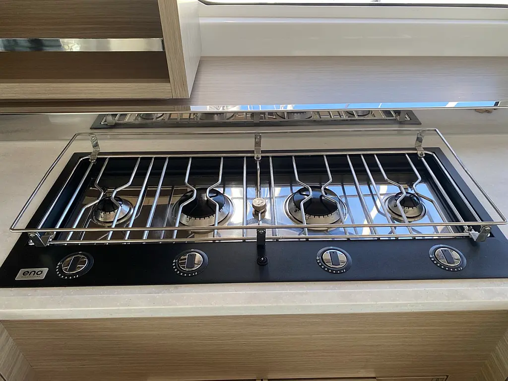 Cockpit-Kissen, Lautsprecher im Cockpit, Kaffeemaschine, Generator, Kühlschrank, Bimini, Elektrische Toilette, Klimaanlage, Wassermacher