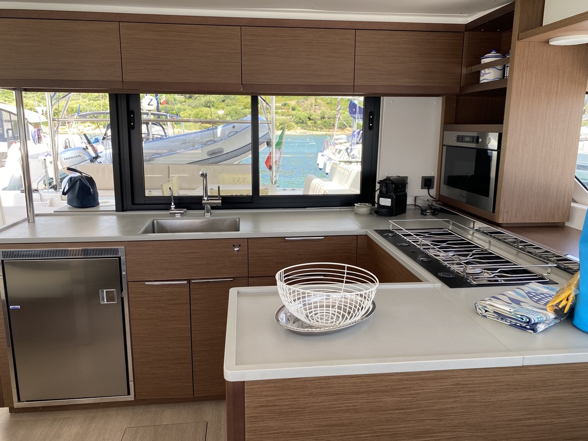 Cockpit-Kissen, Lautsprecher im Cockpit, Kaffeemaschine, Inverter, Generator, Teak Cockpit, Kühlschrank, Bimini, Elektrische Toilette, Klimaanlage, Wassermacher