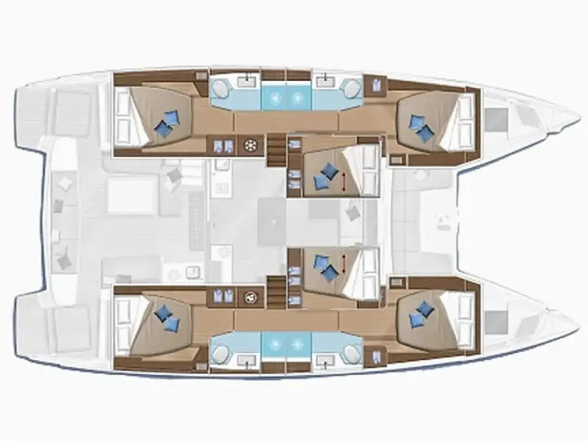 8 (4 double + 2 semi-double cabins + 2 single forepeak cabins)