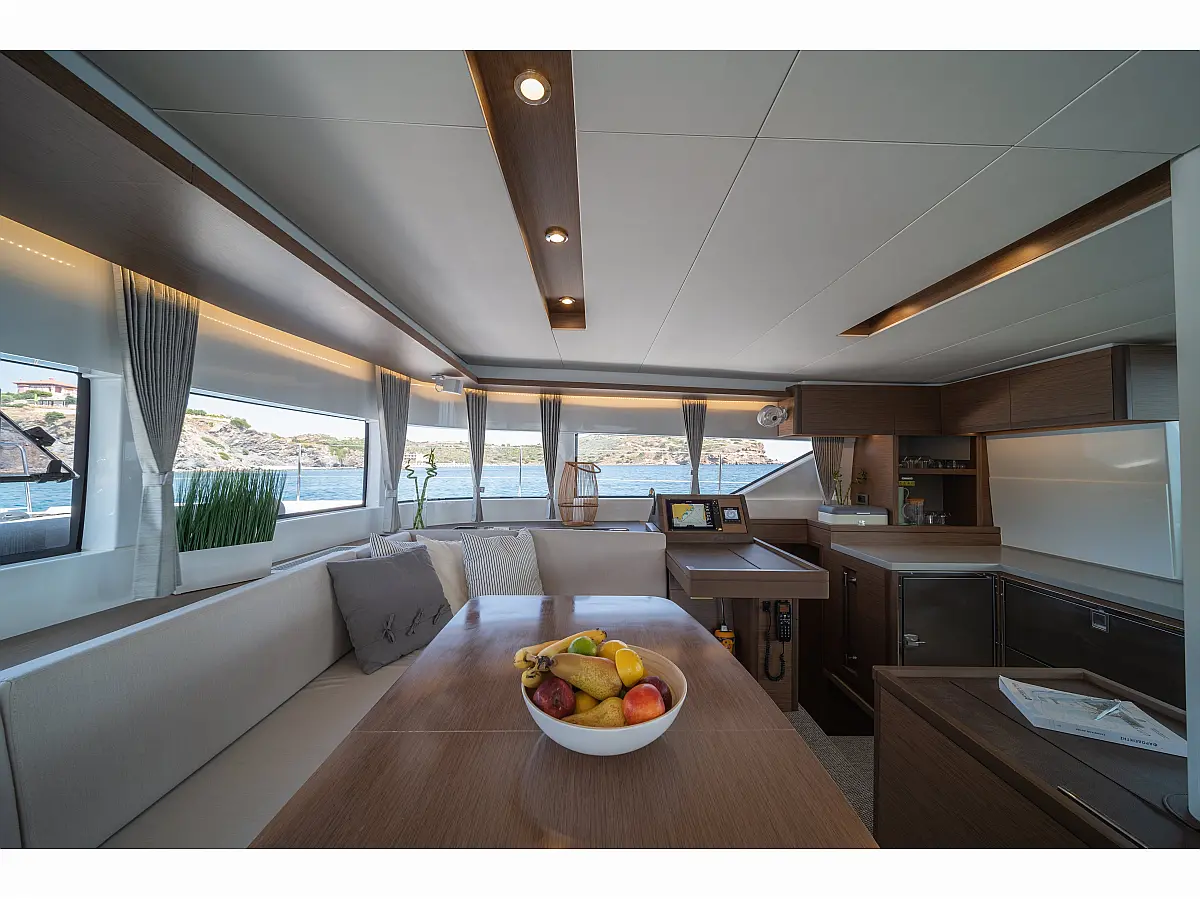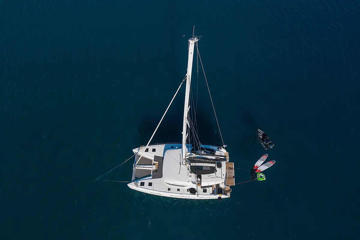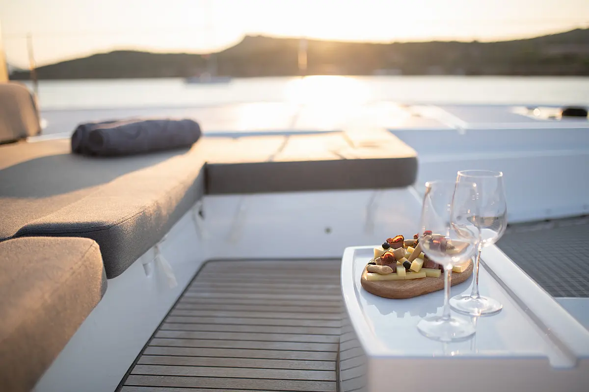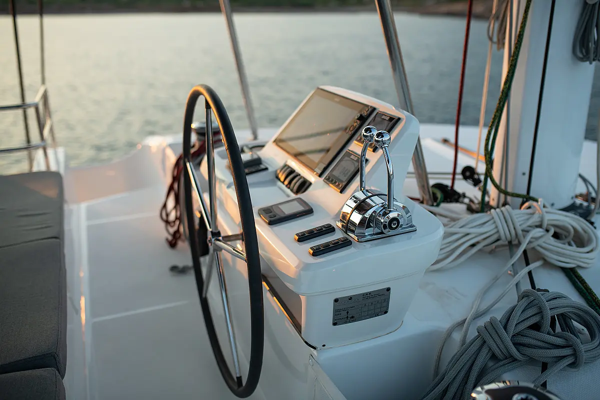 Teak Cockpit, Klimaanlage, Elektrische Toilette, Kaffeemaschine, Generator, Hydraulische Gangway, Eismaschine, Außenbordmotor, Wassermacher