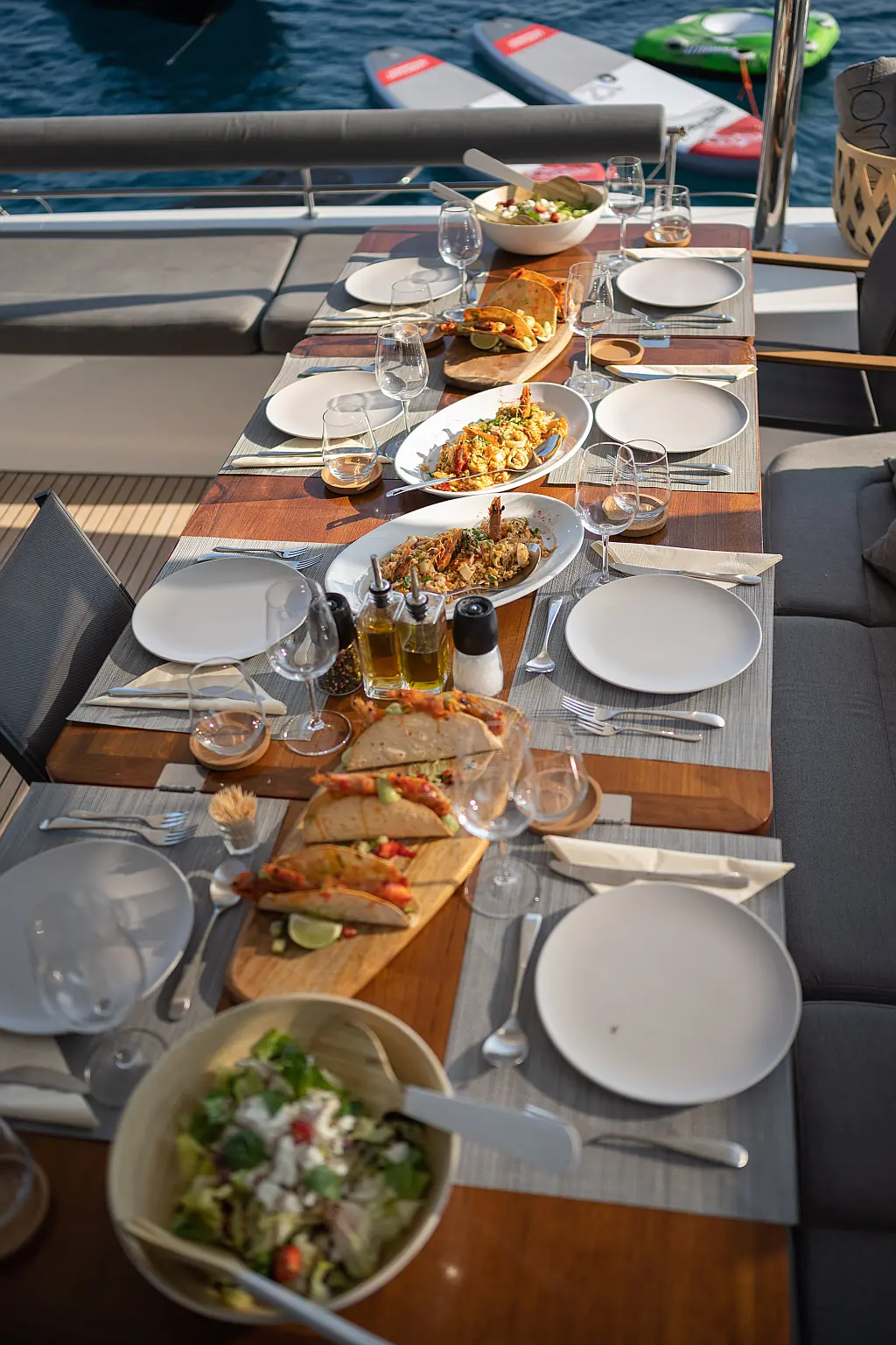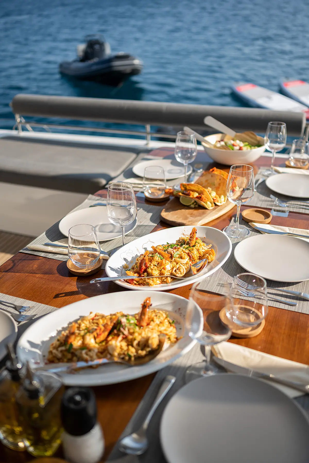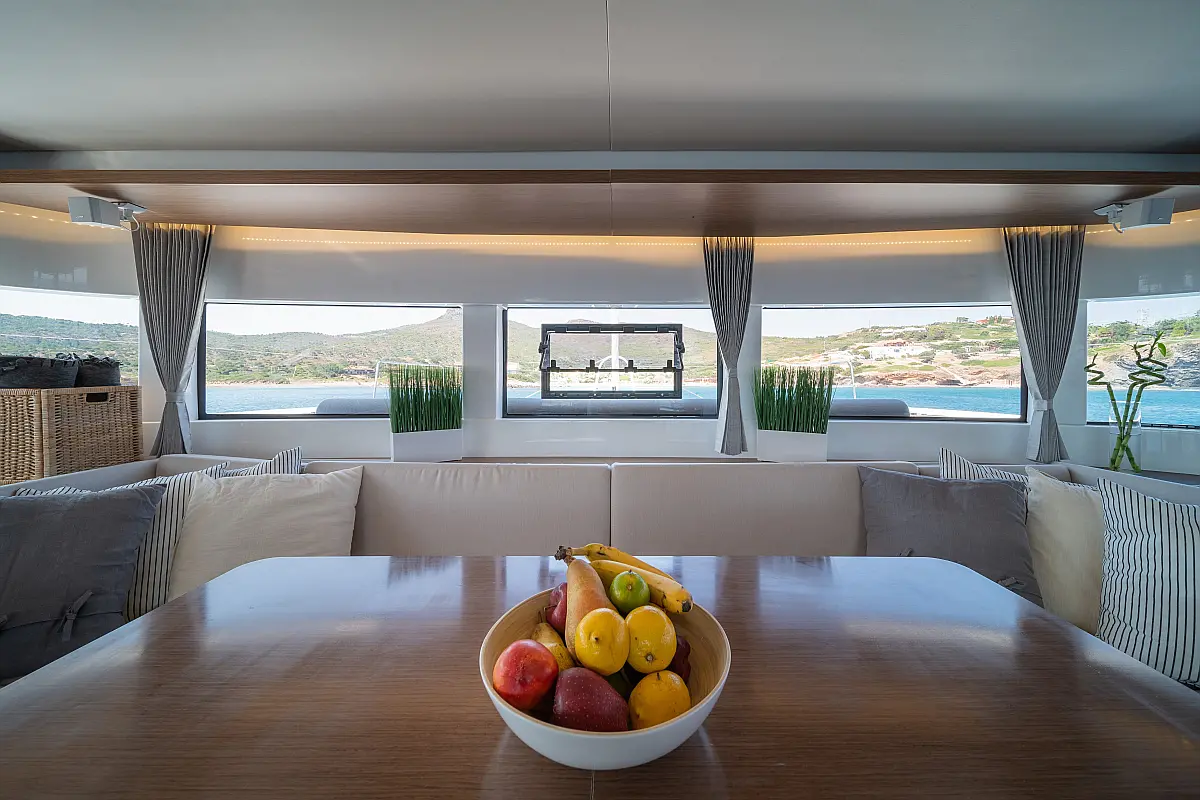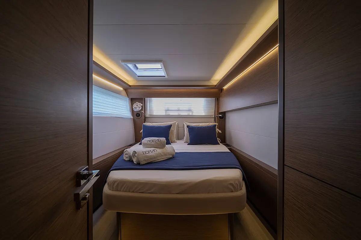 Teak Cockpit, Klimaanlage, Elektrische Toilette, Kaffeemaschine, Generator, Hydraulische Gangway, Eismaschine, Außenbordmotor, Wassermacher
