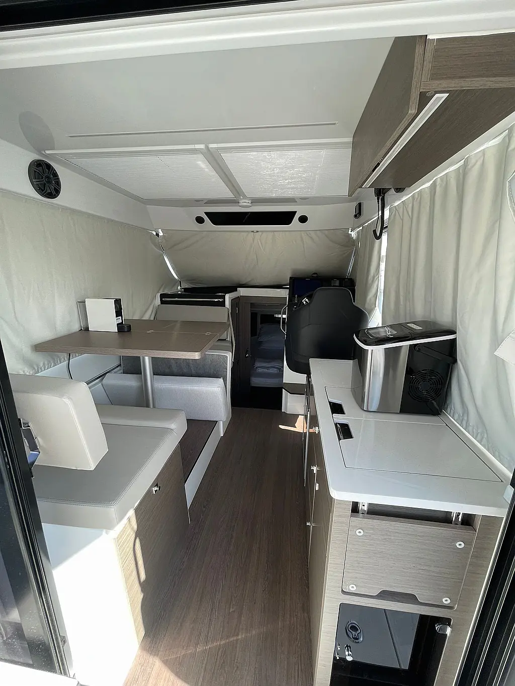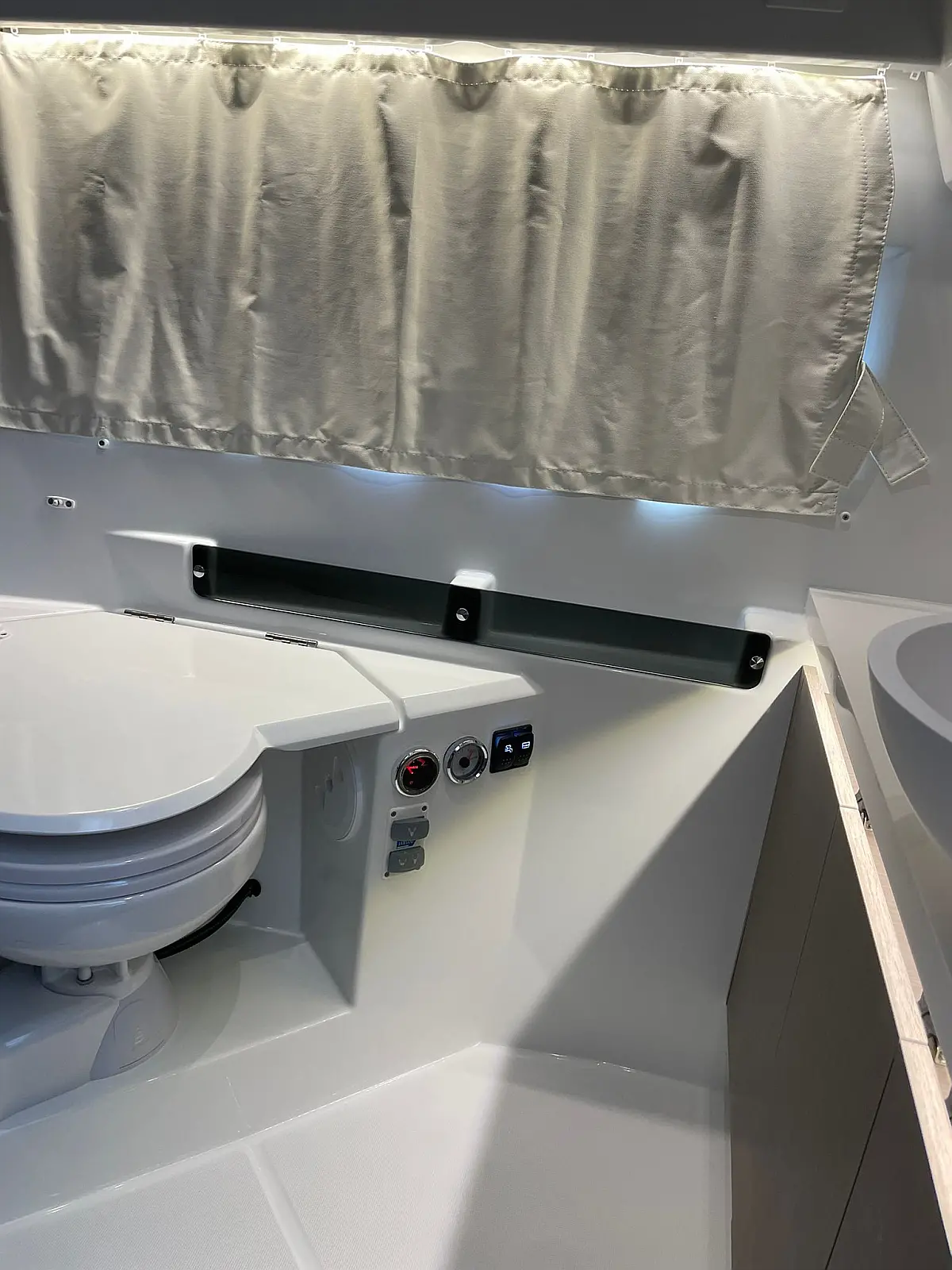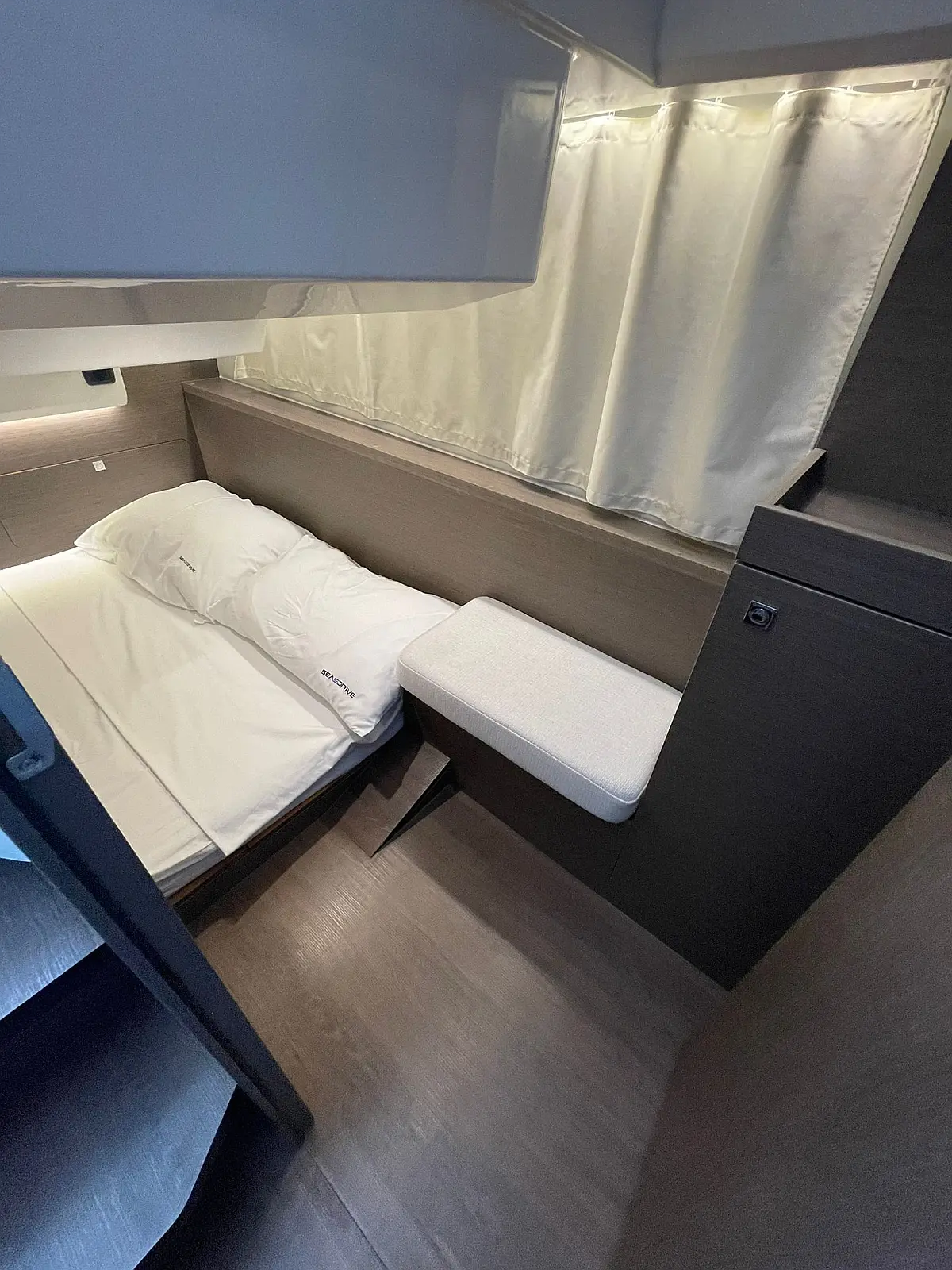 Elektrische Winch (Segel), Klimaanlage, Elektrische Toilette, Solar-Panele, Kühlschrank, Cockpit-Kissen, Badeplattform