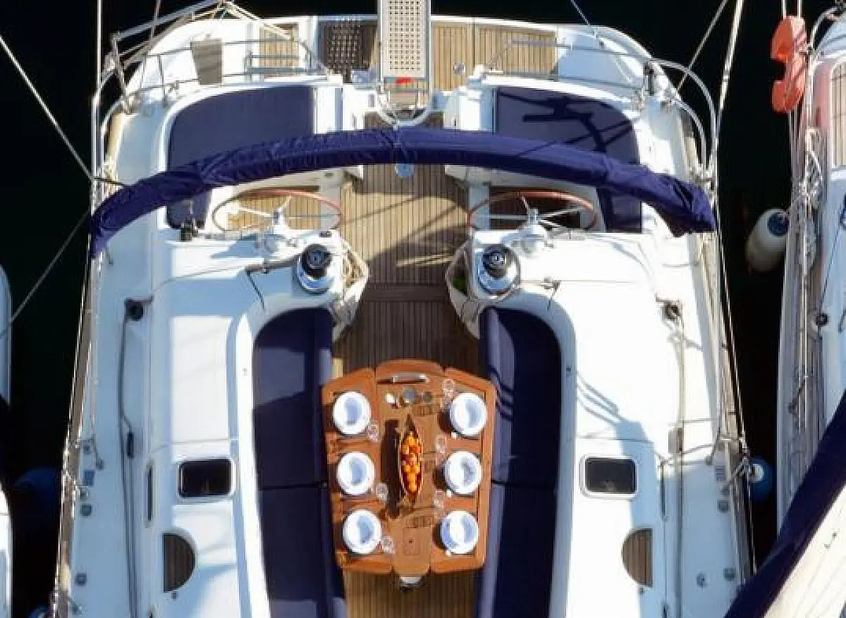 Sprayhood, Inverter, Generator, Klimaanlage, Wassermacher, Kühlschrank, Elektrische Winch (Segel), Cockpit-Kissen, Teak Cockpit