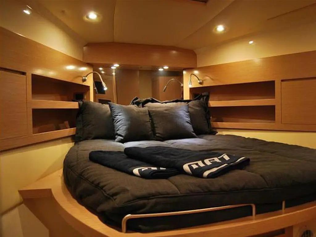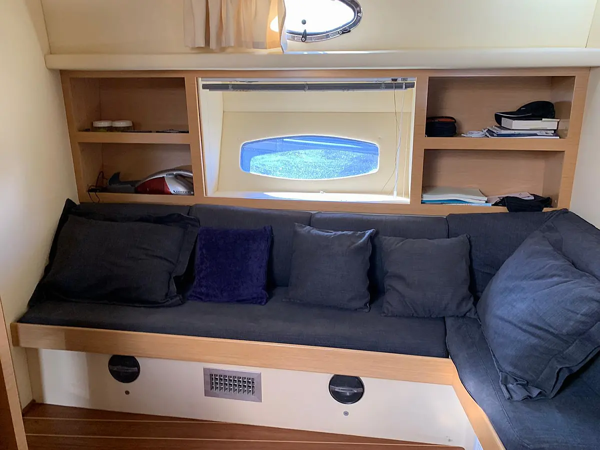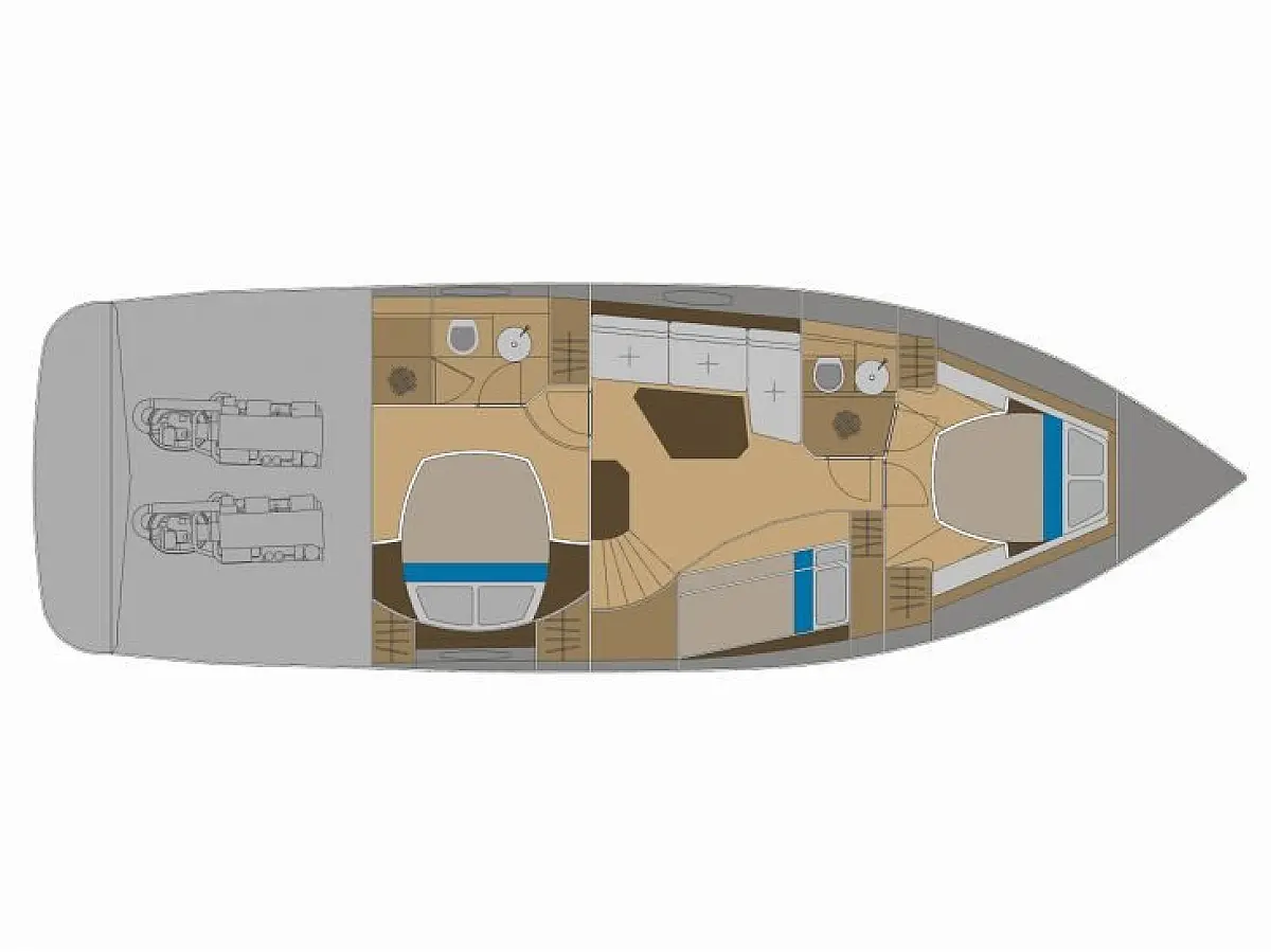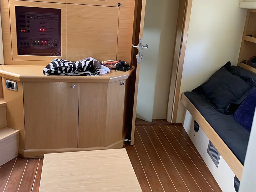 Elektrische Winch (Segel), Teakdeck, Elektrische Toilette, Kaffeemaschine, Kühlschrank
